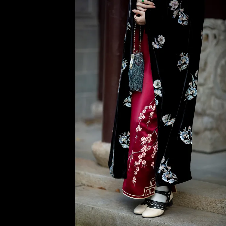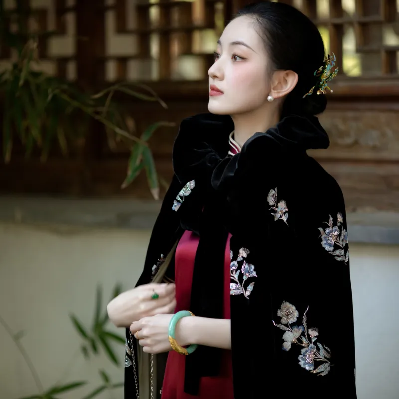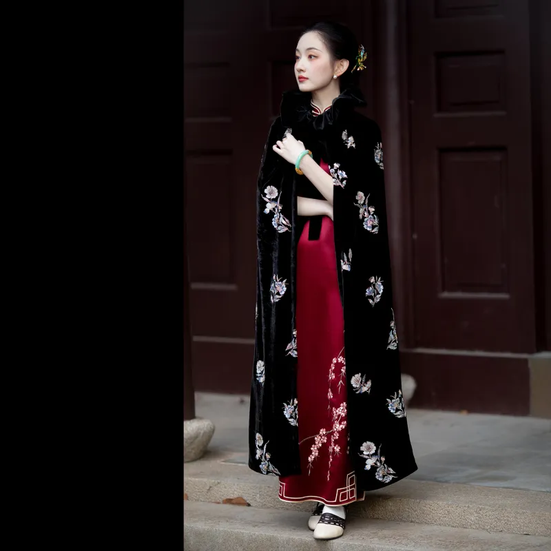 Цвет:Чёрный шелковый бархат с бусинами плащ