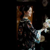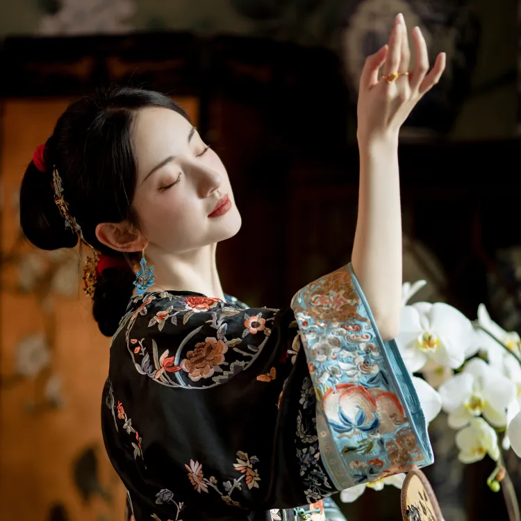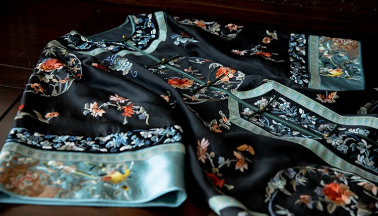 Черный полностью вышитый круглый узор Qing Han, женский, передняя планка, сиреневый и плащ