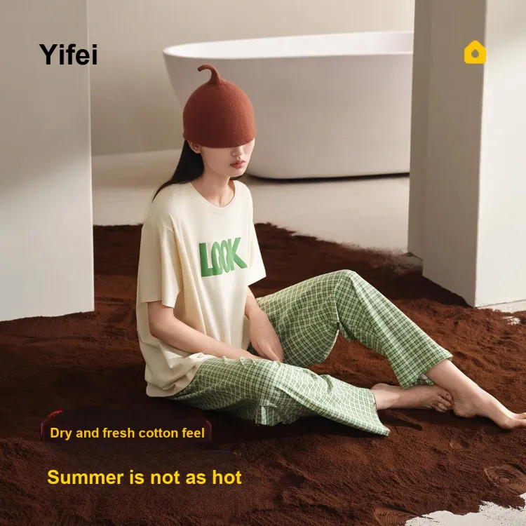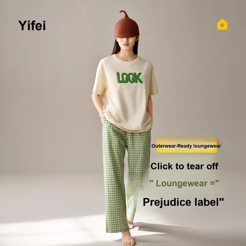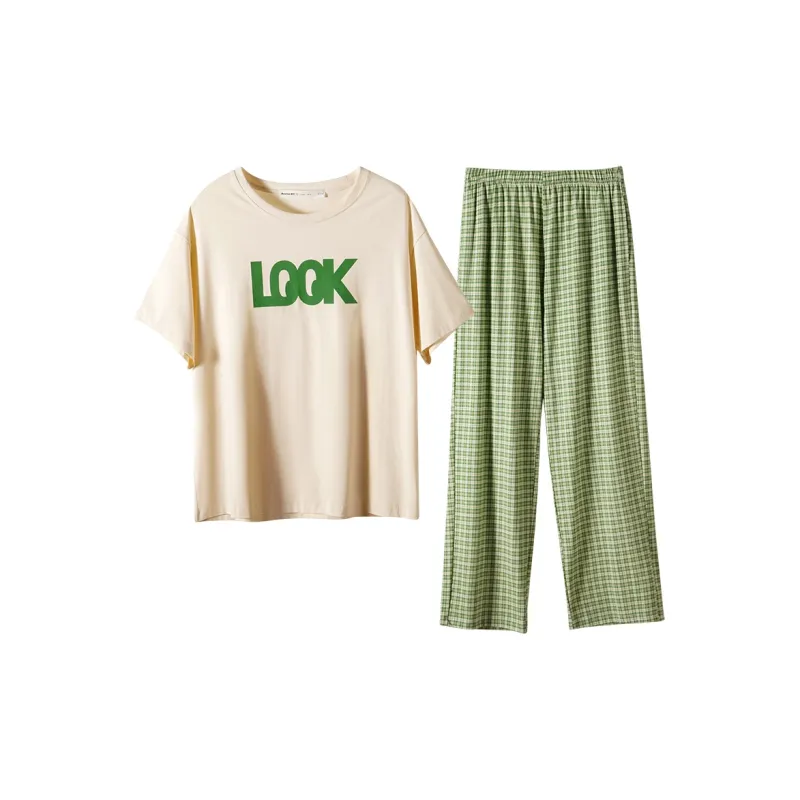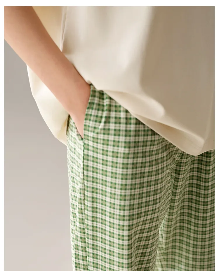 YIFEN Бежевый Абрикос Зеленый Клетка Женский Пижамный Комплект