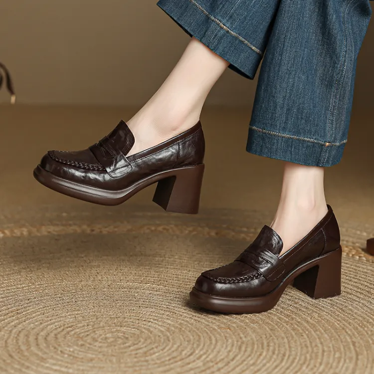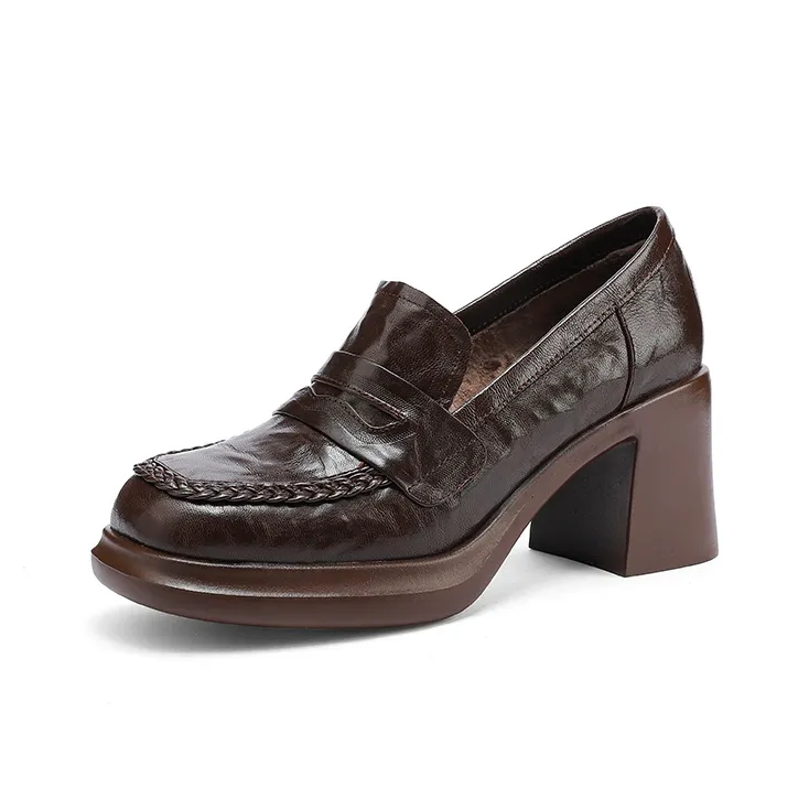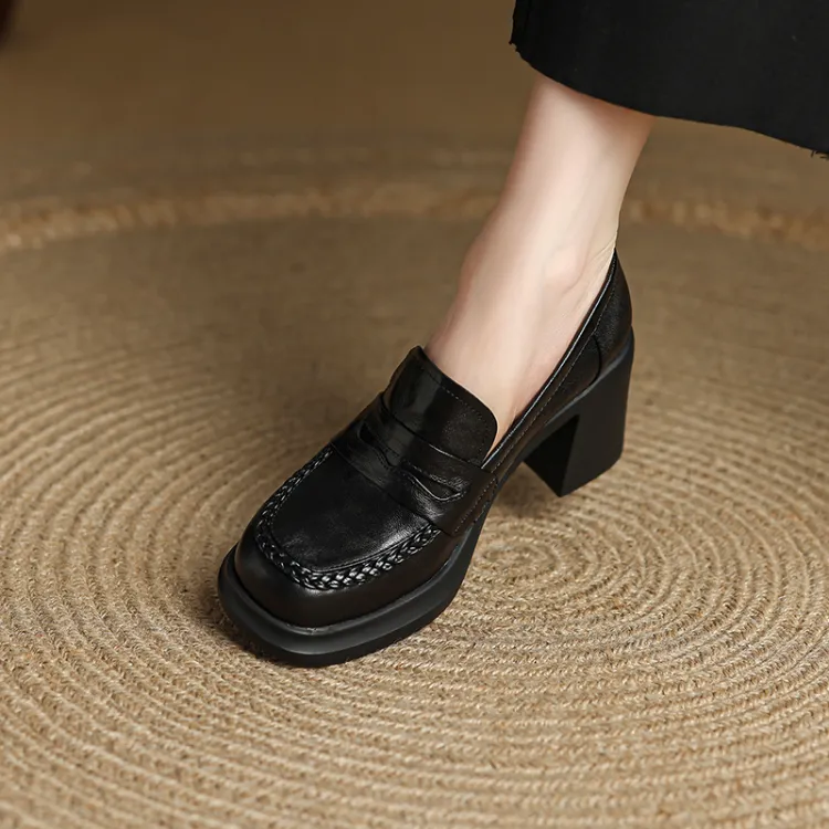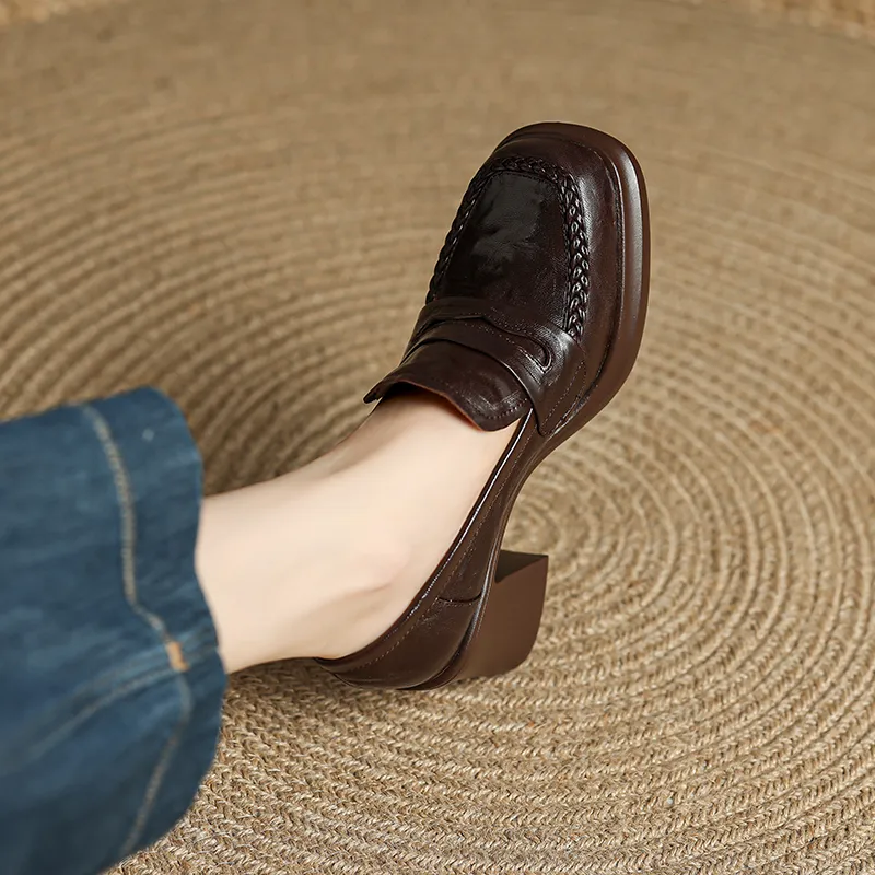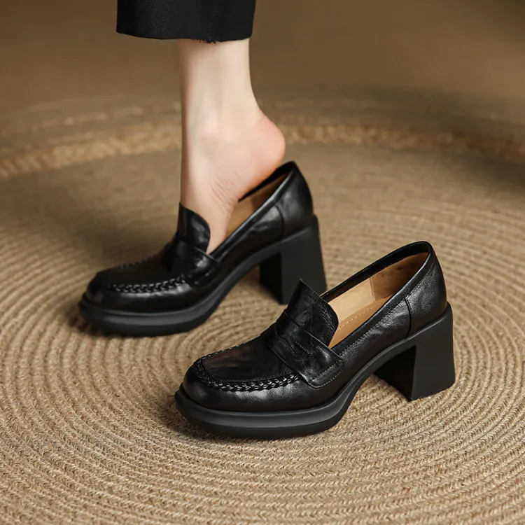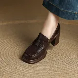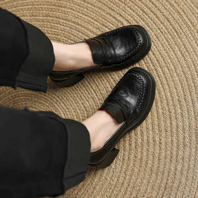 YIKEFEI Британский стиль Грубый каблук Slip-on Лоферы Круглый носок Элегантность Универсальная Обувь Без подкладки