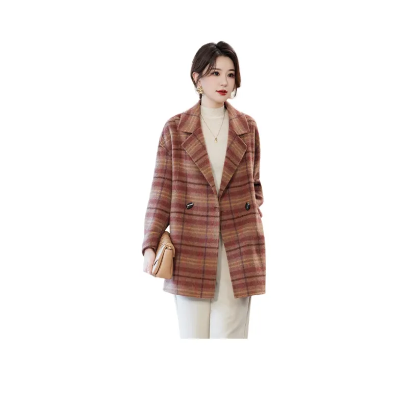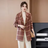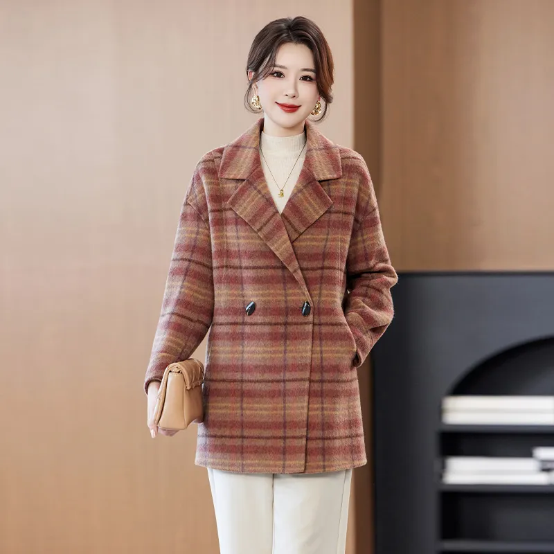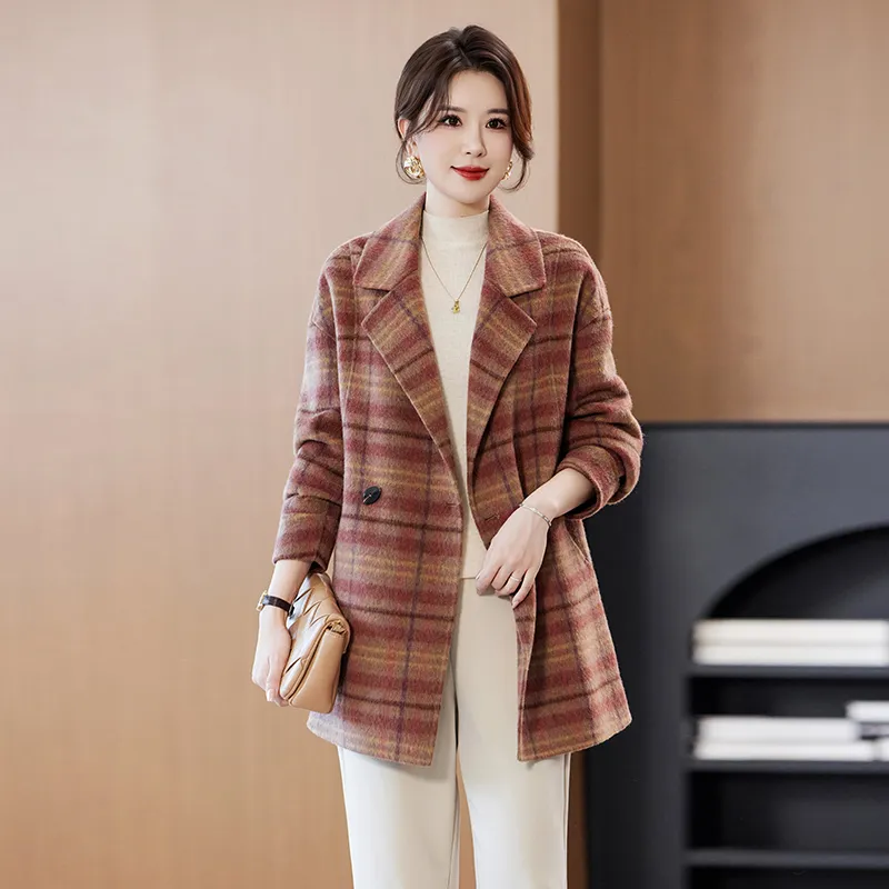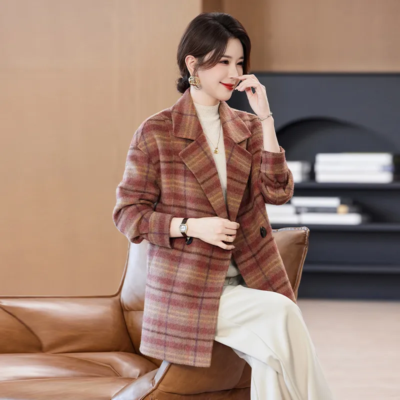 YIMENGYUAN Красный Коричневый Клетчатый Женское Пальто