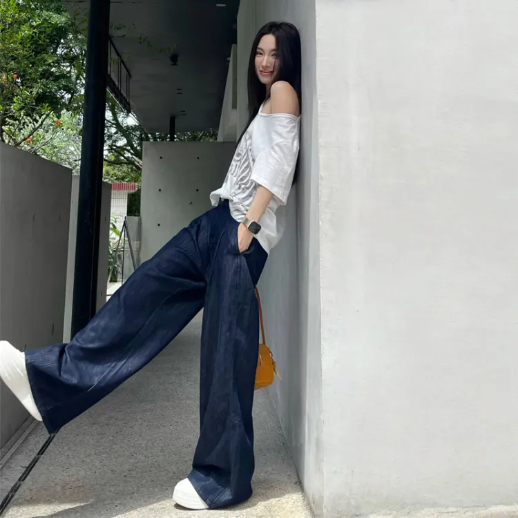 Темно-синие удлиненные штаны