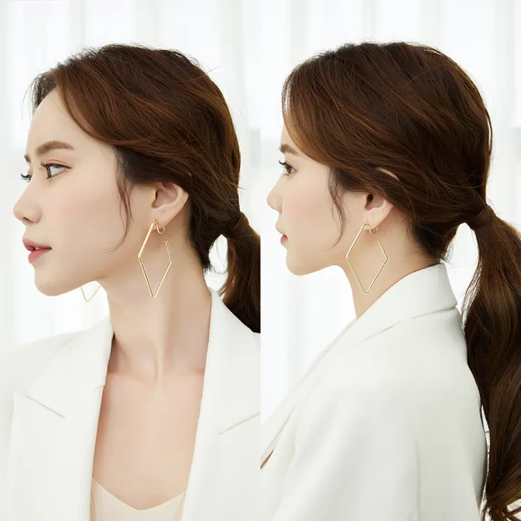 Стиль:Угольно-золотой преувеличенный ромб Большой зажим для ушей