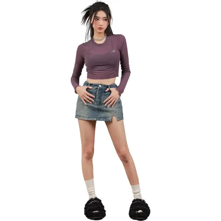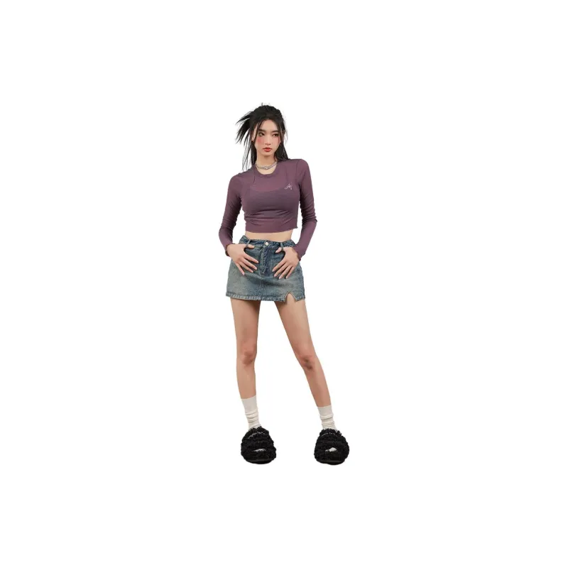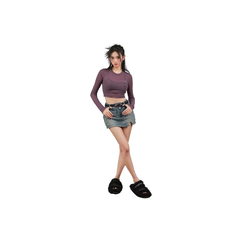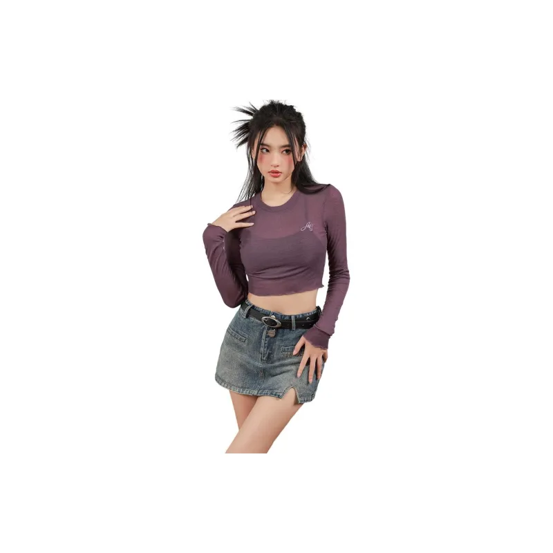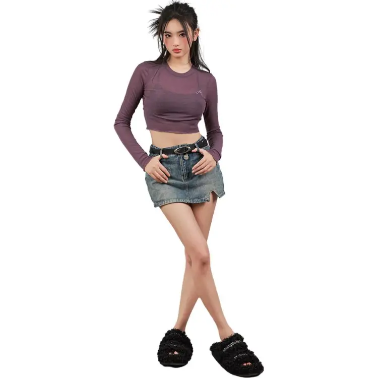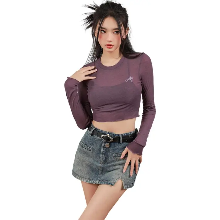 YITOUAGUA Фиолетовый Женский Короткий Топ