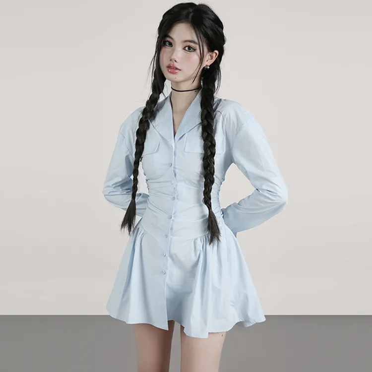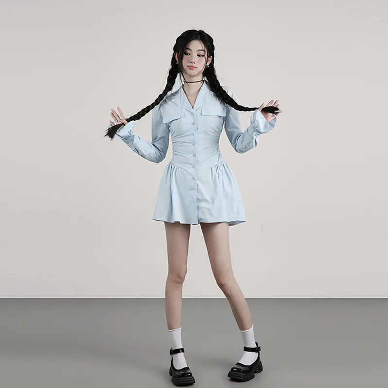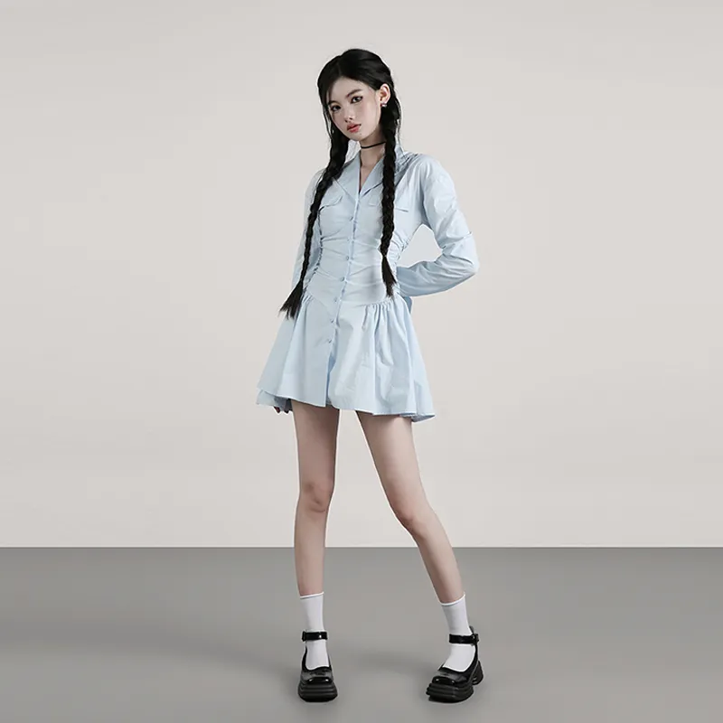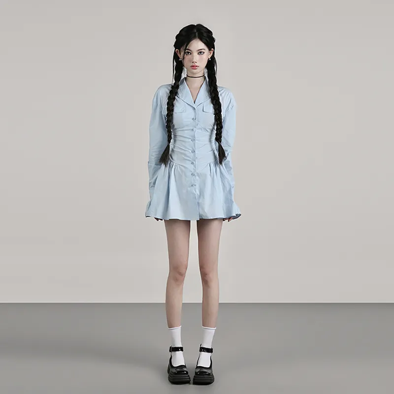 YITOUAGUA Синий Женские Длинные Платья с Длинными Рукавами