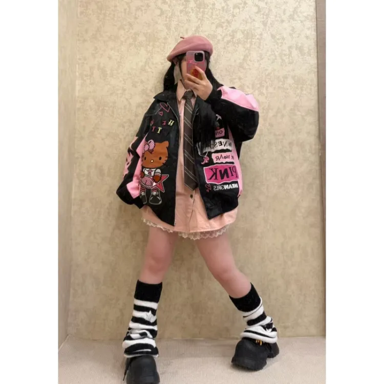 Цвет:Чёрный Розовый [Тяжелая вышивка, байкерский стиль]