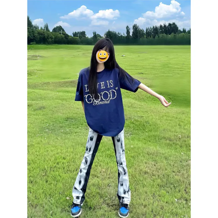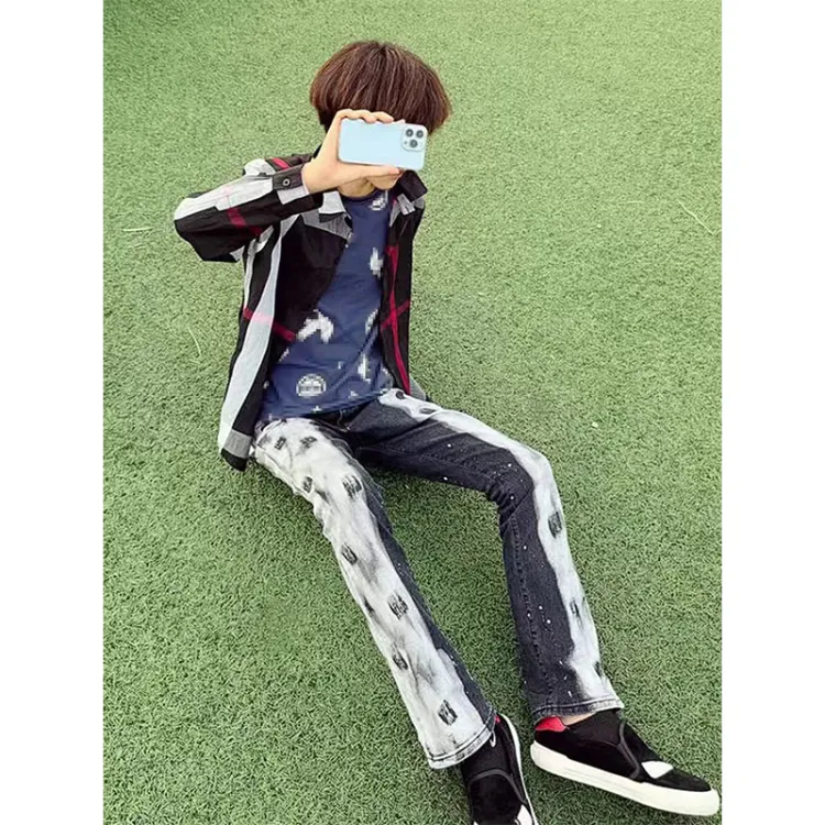 YIWANSHIDUO Черный Белый [Элегантный Универсальный Стиль] Унисекс Джинсы