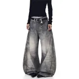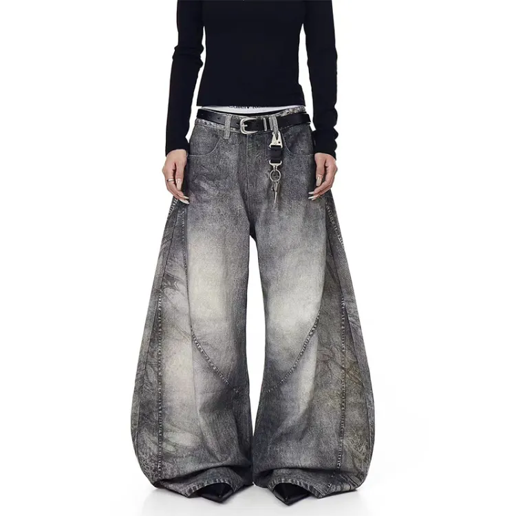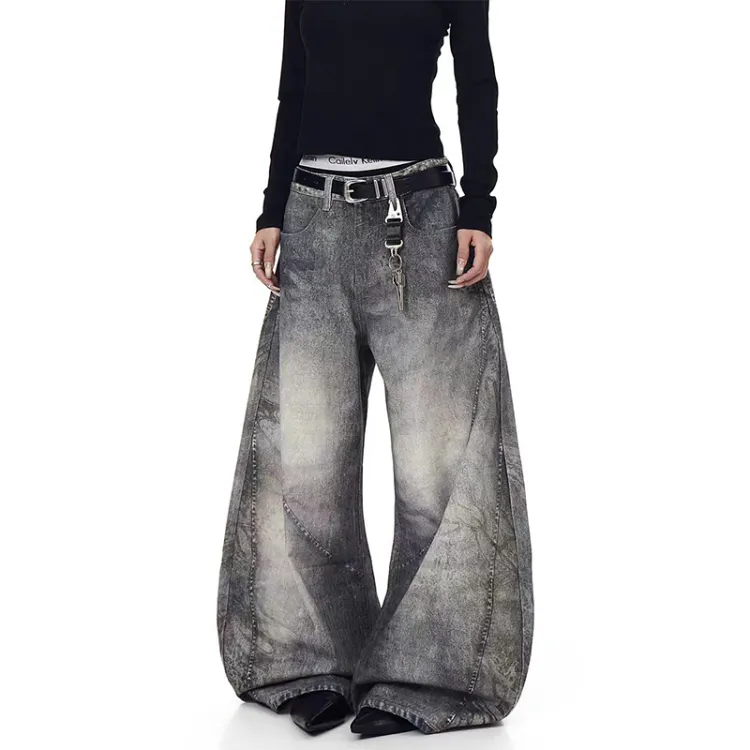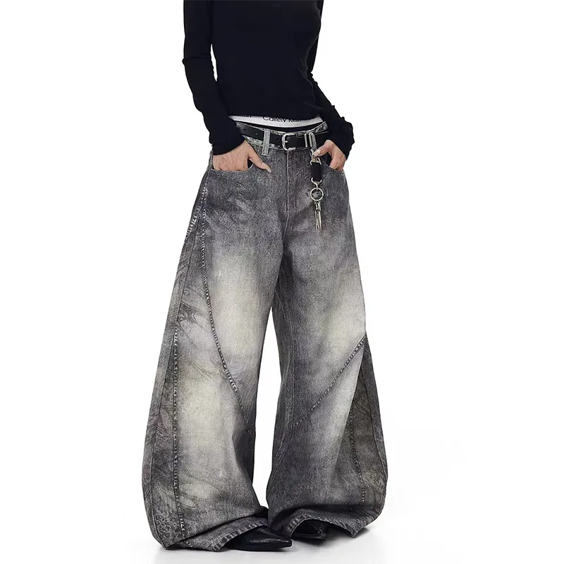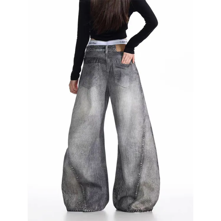 YIWANSHIDUO Дымчатый Серый [Элегантный Универсальный Стиль] Унисекс Джинсы