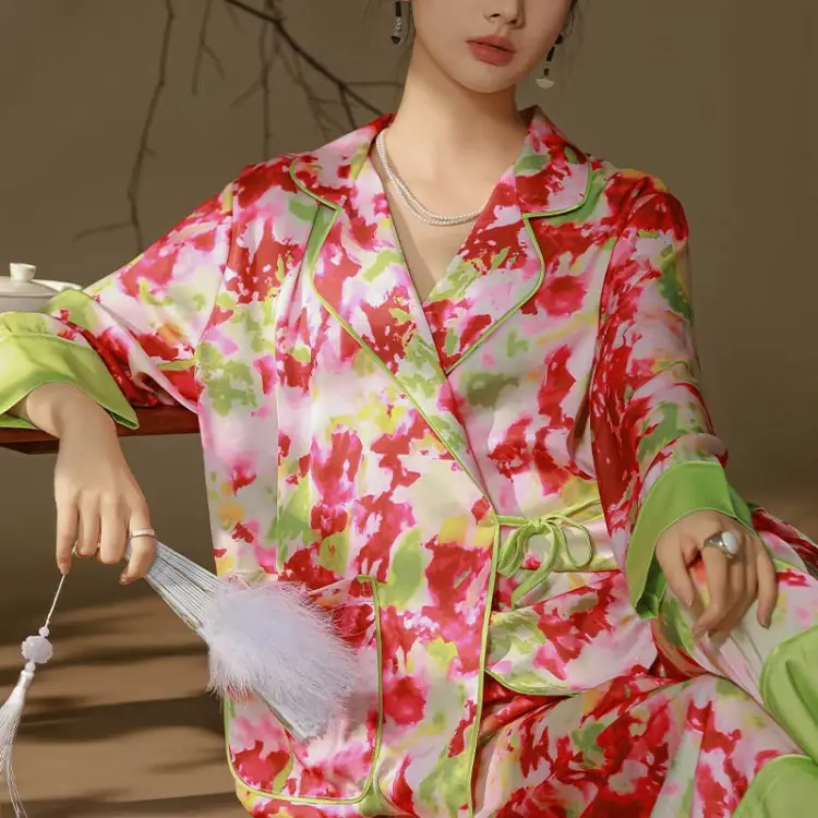 Yiwu Цвет Пижамный комплект Женский Новый китайский стиль Минималистский стиль Верхняя одежда Готовый