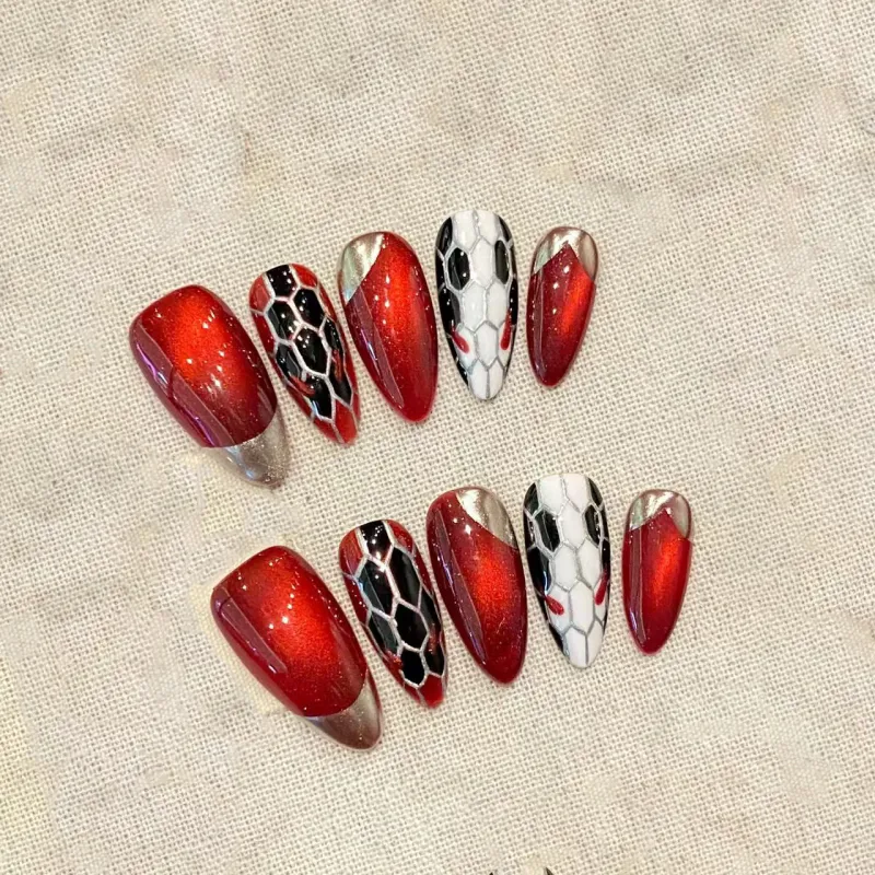 YIYIHE Красный Знак Змеи Элегантность Nail Art MID Длина Заостренный Миндаль Красный Jump Цвет Клетчатый