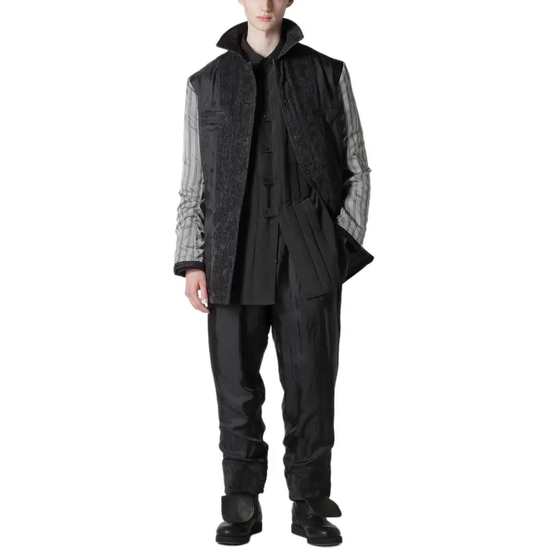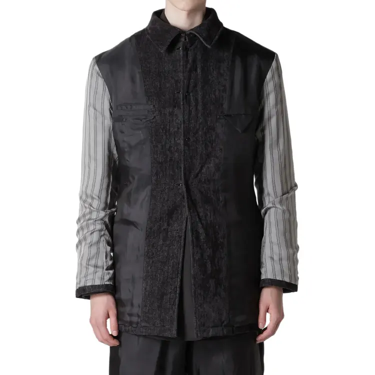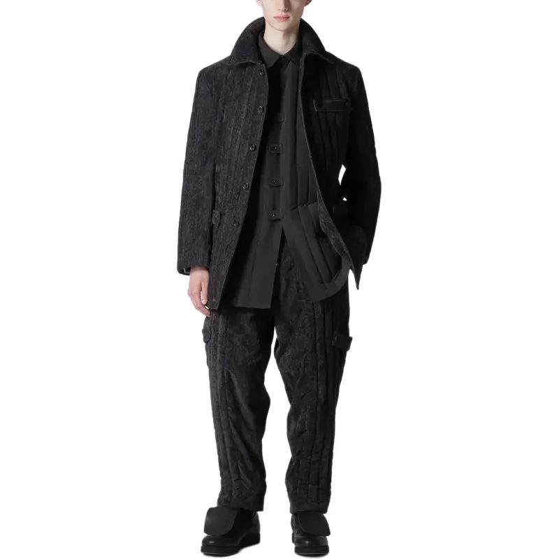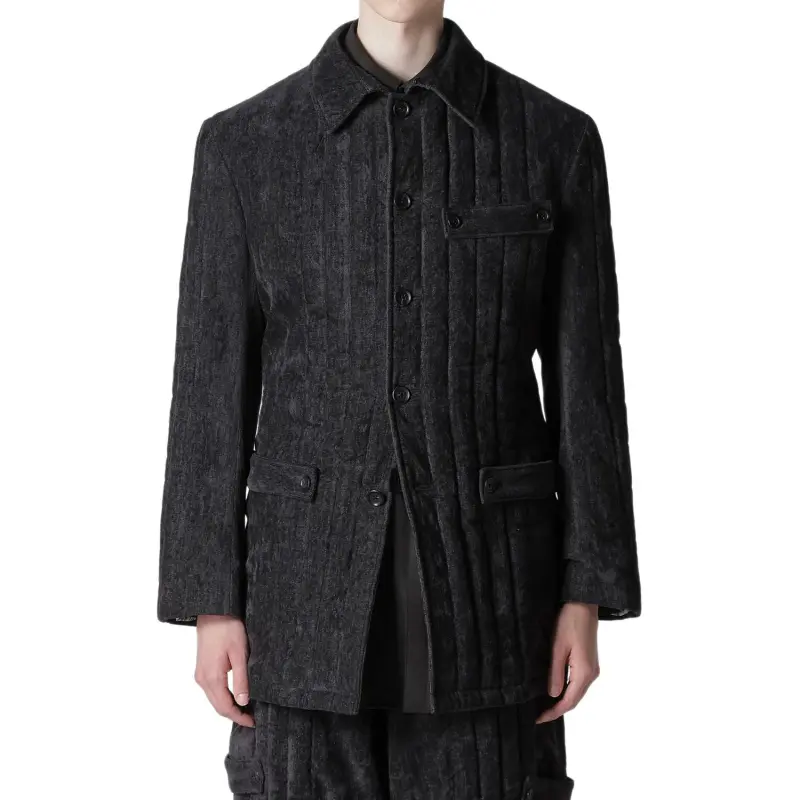 Yohji Yamamoto Pour Homme FW25 Linen Velvet TAB Details Пэдовая Куртка Куртки Пальто Мужской