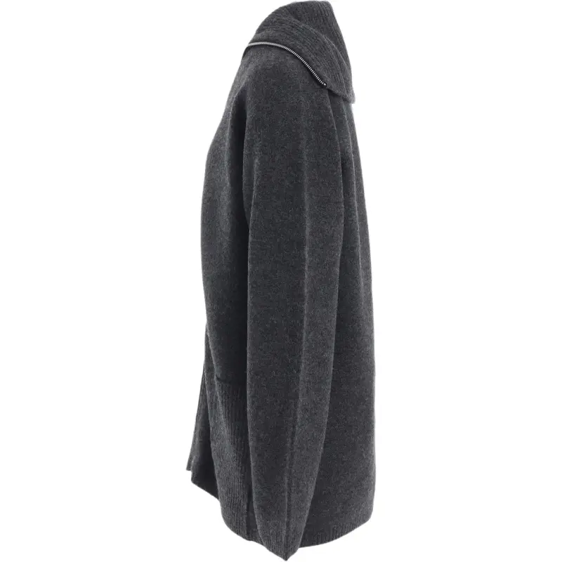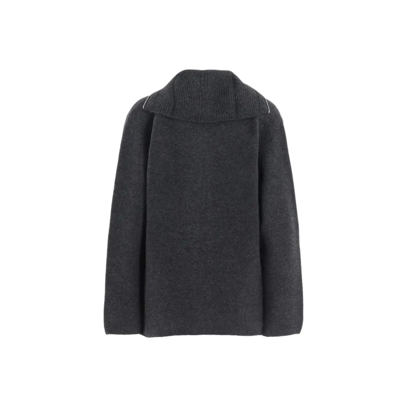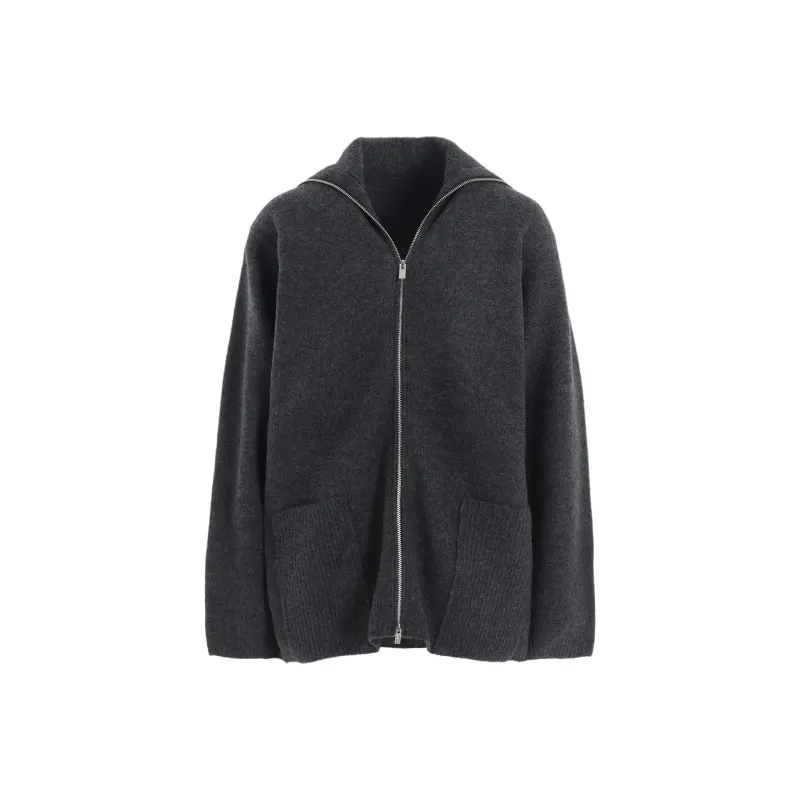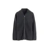 Yohji Yamamoto Femme FW25 5G3P Простой Стич 1x1 Ребро BIG Высокий Воротник ZIP Кардиган Трикотаж Женский