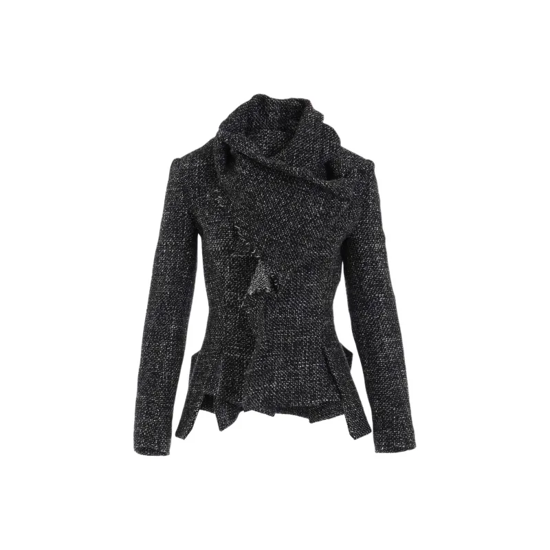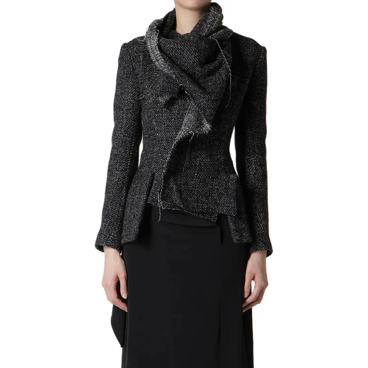 Yohji Yamamoto Femme FW25 Handmade Tweed STOLE DETAIL JACKET Куртки Пальто Женские