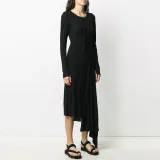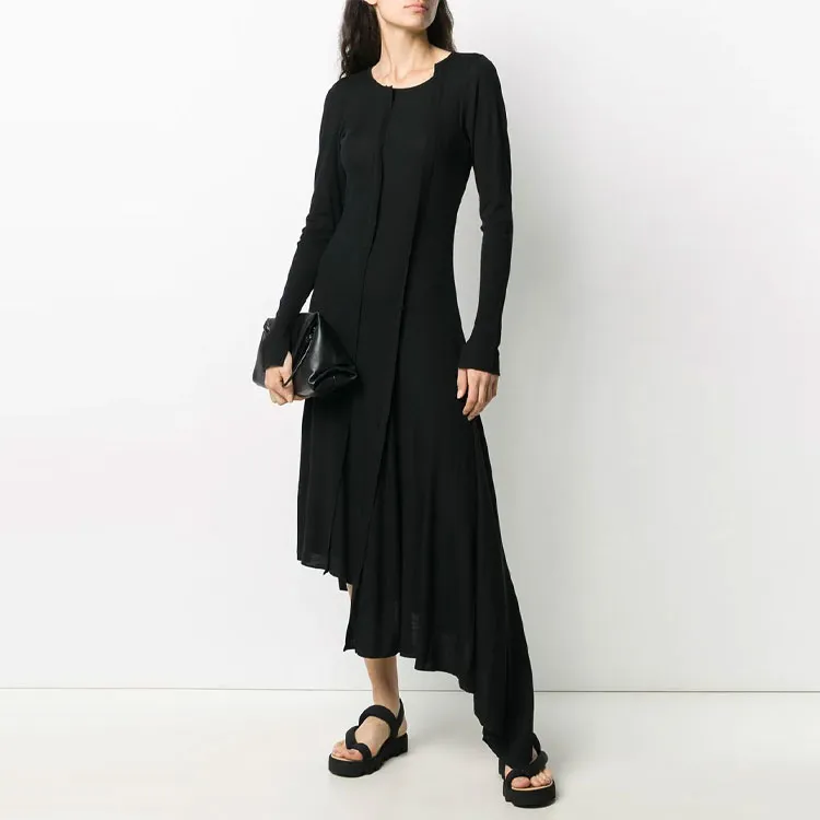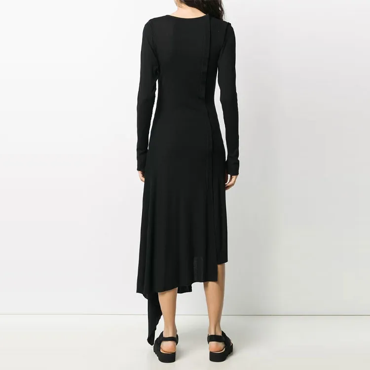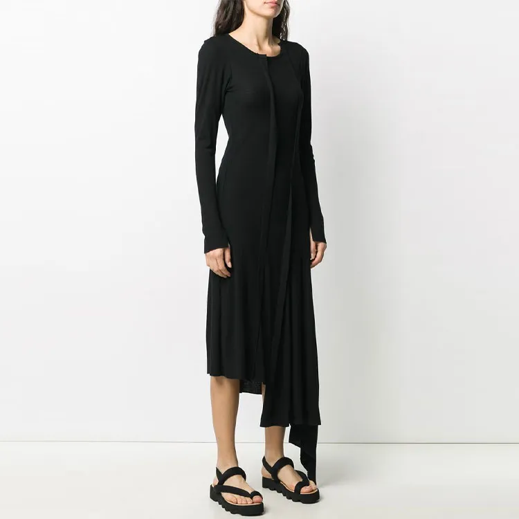 Yohji Yamamoto Черные Женские Длинные Платья с Длинными Рукавами