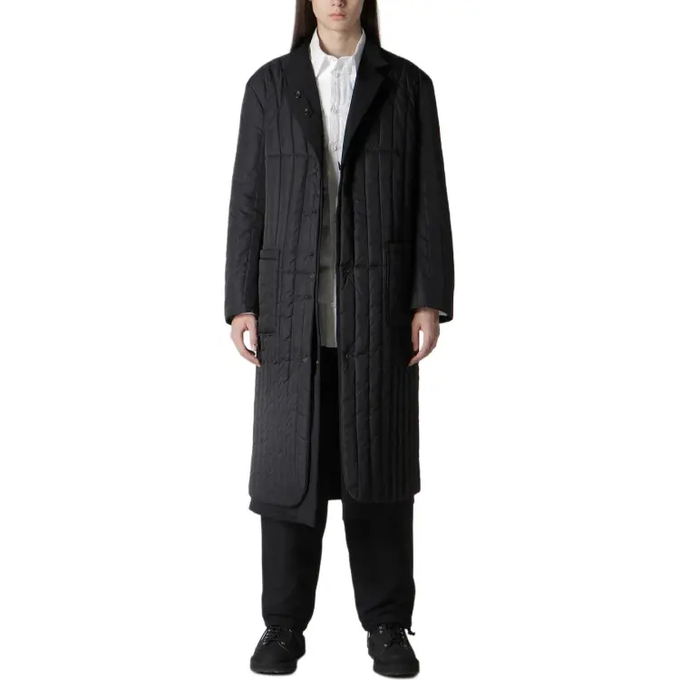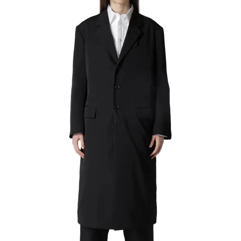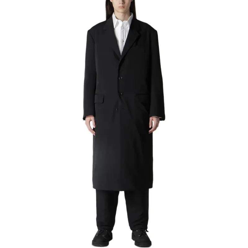 Yohji Yamamoto Pour Homme FW25 Шерсть Gabardine 4 Кнопки Длинная Куртка с Подкладкой Куртки и Пальто Мужской