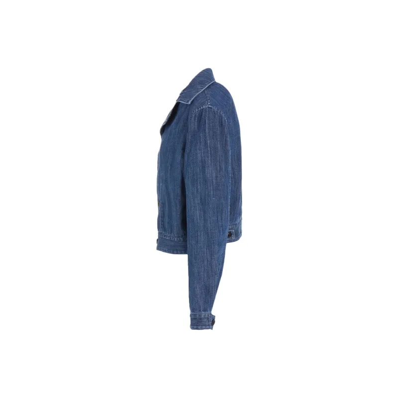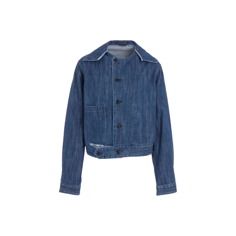 Yohji Yamamoto Y'S FW25 8OZ Denim Slit Ожерелье-чокер Короткий Блоуз Деним Куртка Женская