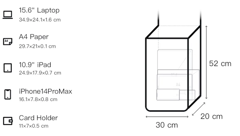 Д30*Ш20*В52см