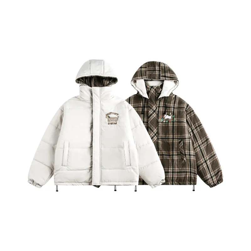 YONGYAN Кофейная клетка Двусторонний Унисекс Пуховики