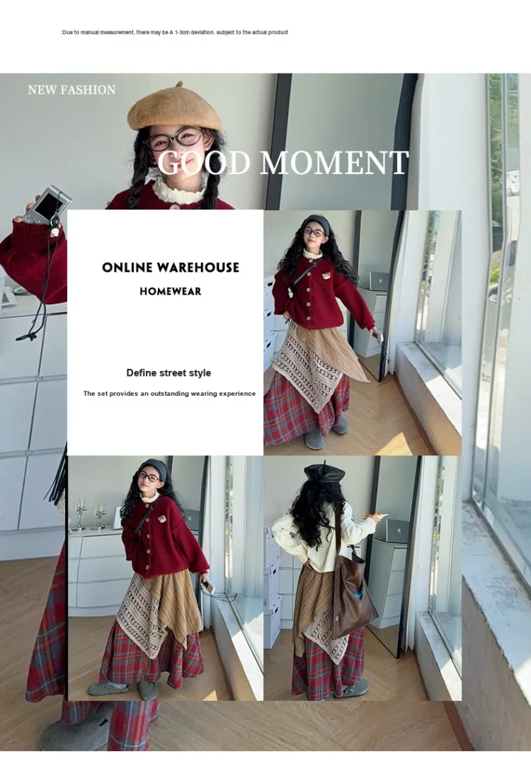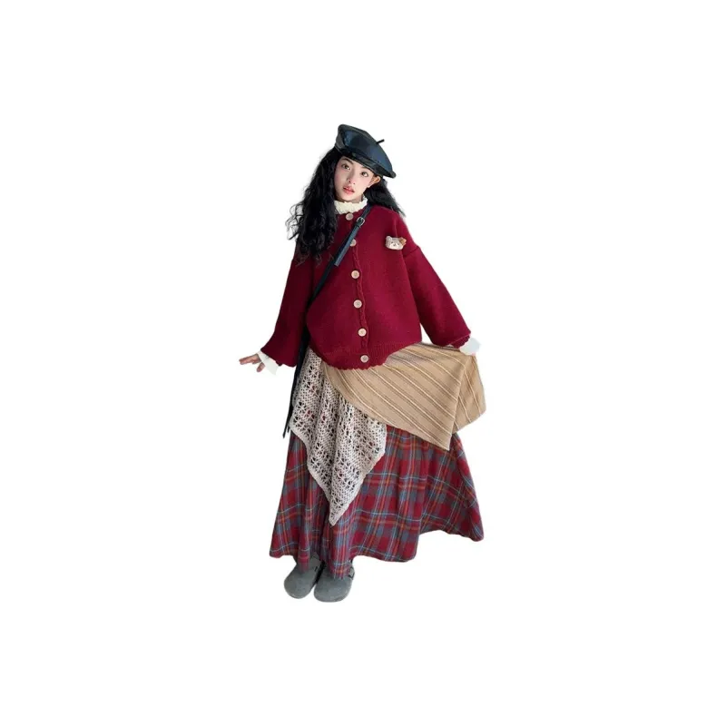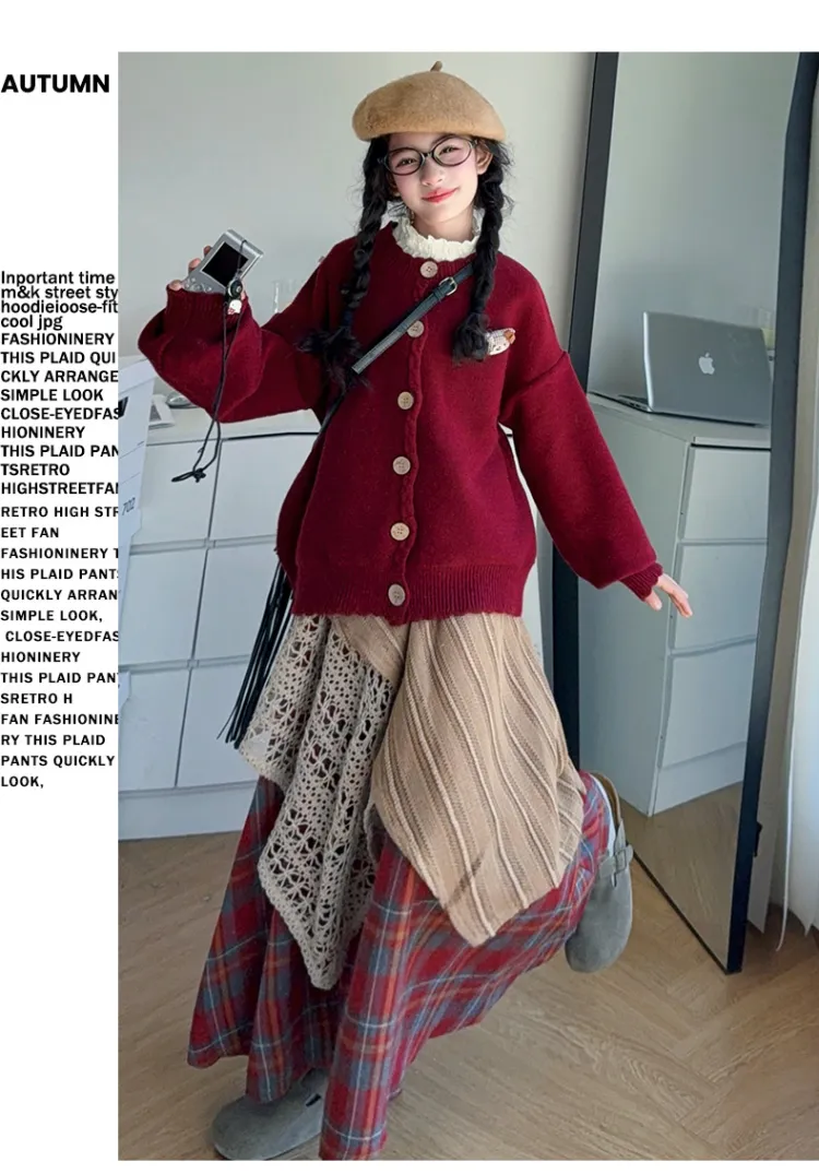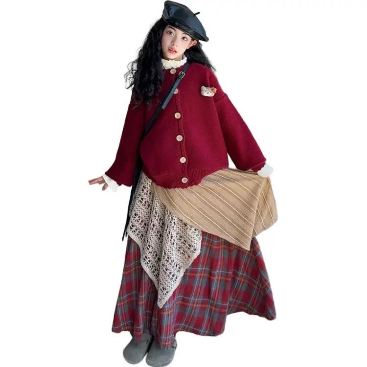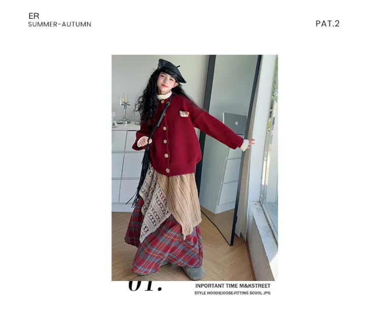 YOUMIWU Красный Трёхкомпонентный Набор [Брелок Включён] Детские Комплекты с Юбкой