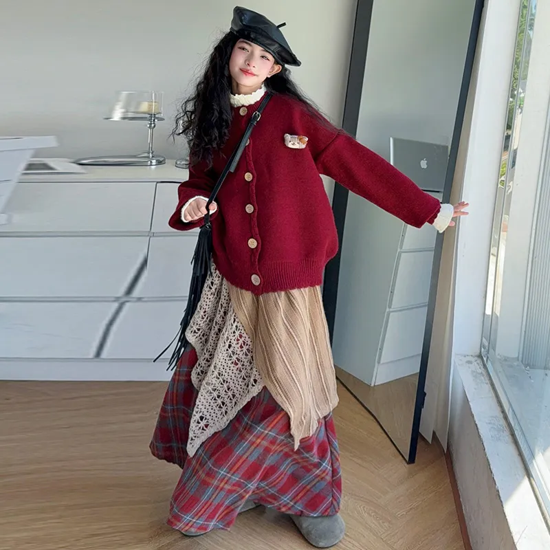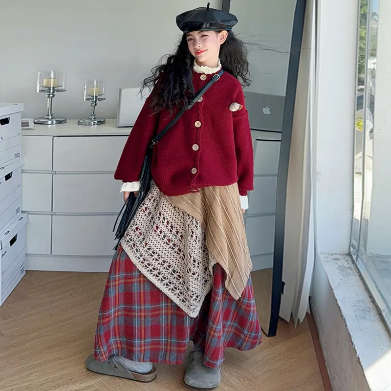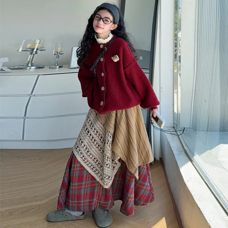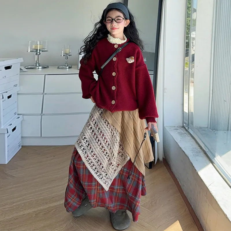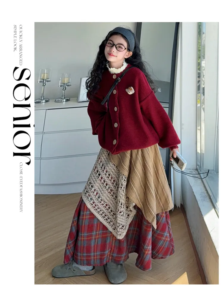 YOUMIWU Красный Трёхкомпонентный Набор [Брелок Включён] Детские Комплекты с Юбкой
