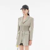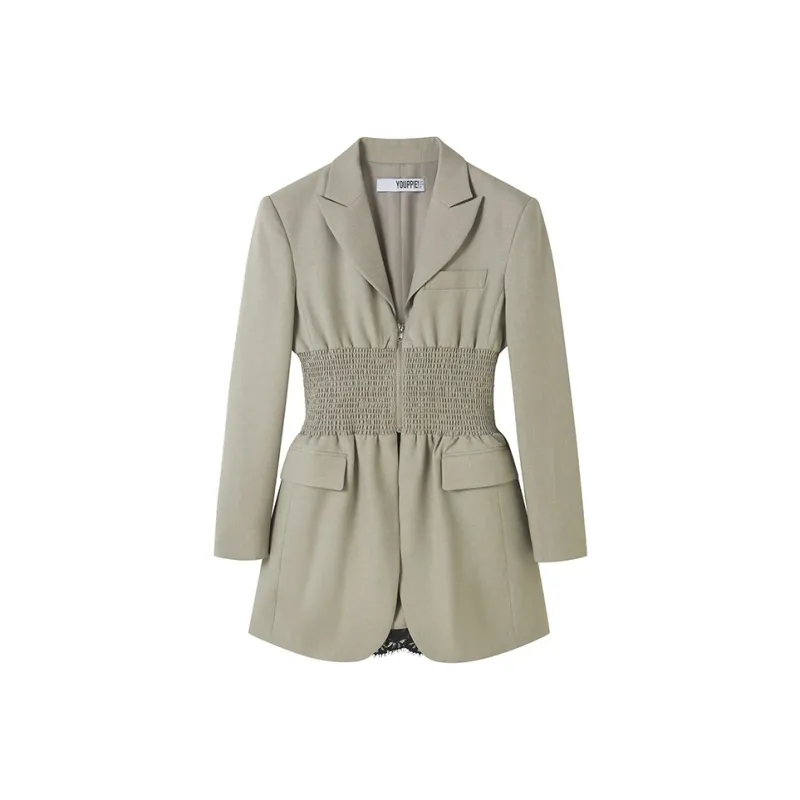 Youppiestaywithme Серо-зеленое Женское Длинное Платье с Рукавами