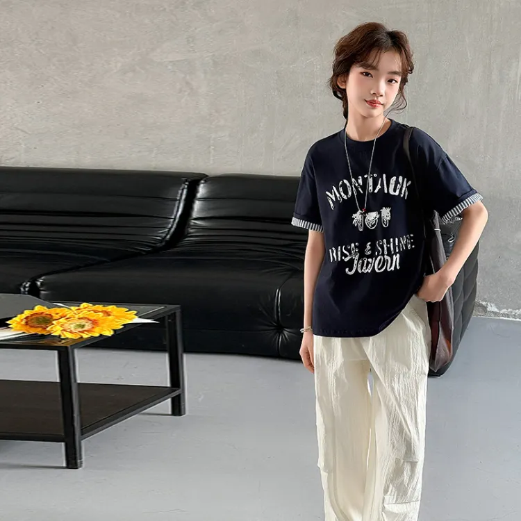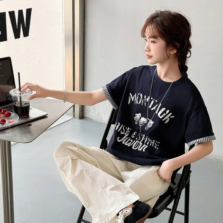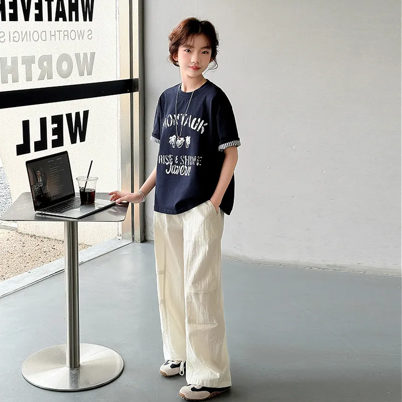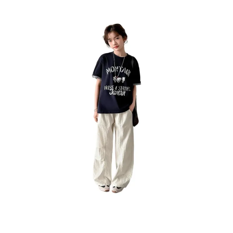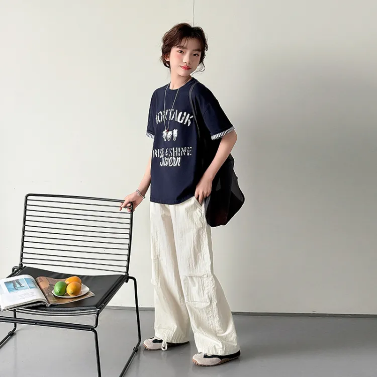 Цвет:Темно-синий синий футболка + бежевые штаны