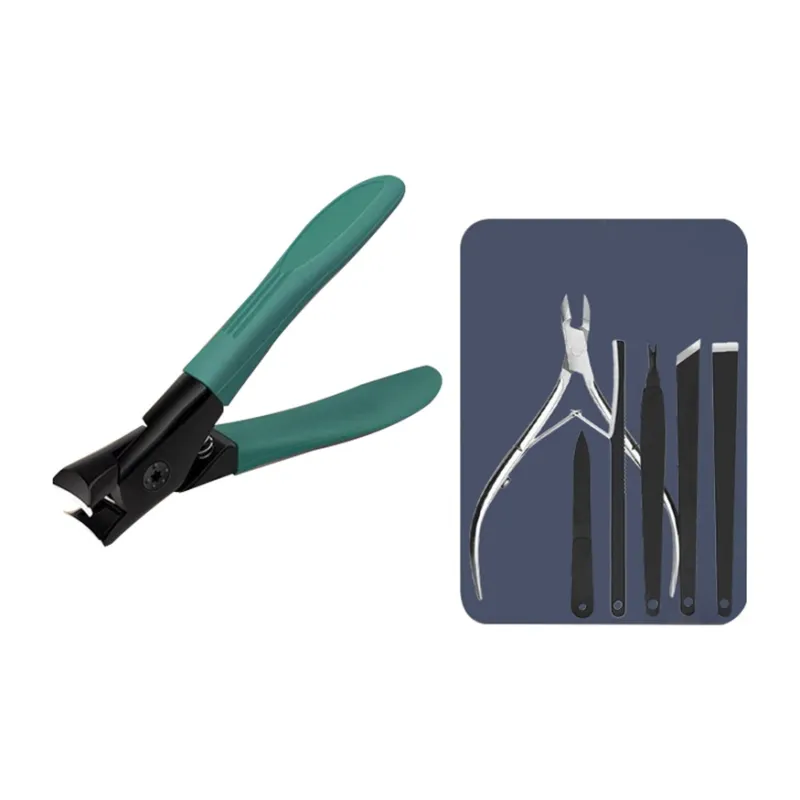 Зеленый большой набор щипцов для ногтей + набор для педикюра, 6 штук
