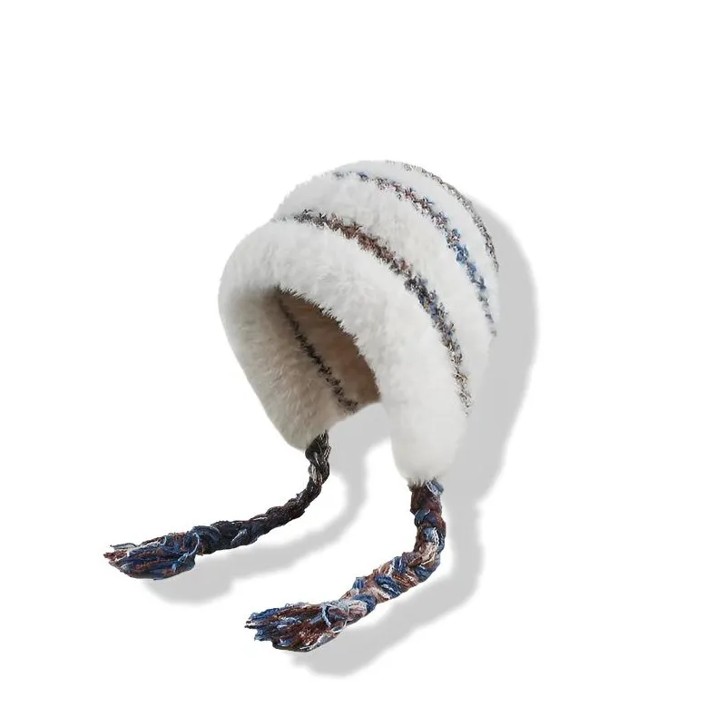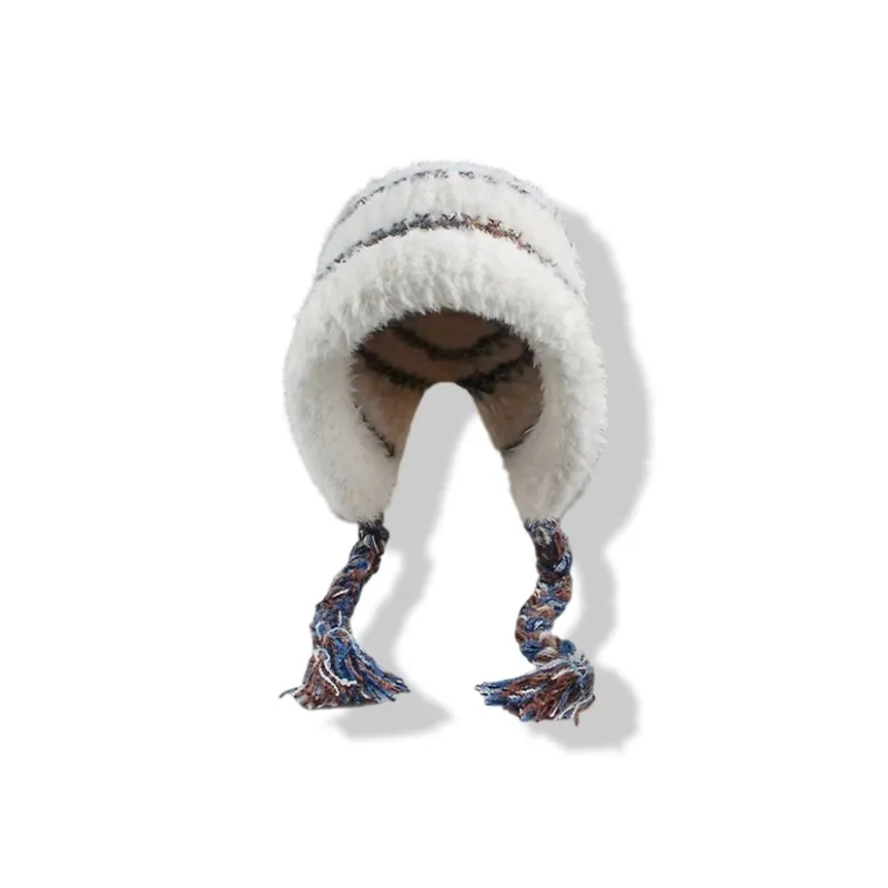 Стиль:⭐Снежное Таяние Белый, Мода Универсальная Термическая Шапка с Ушками