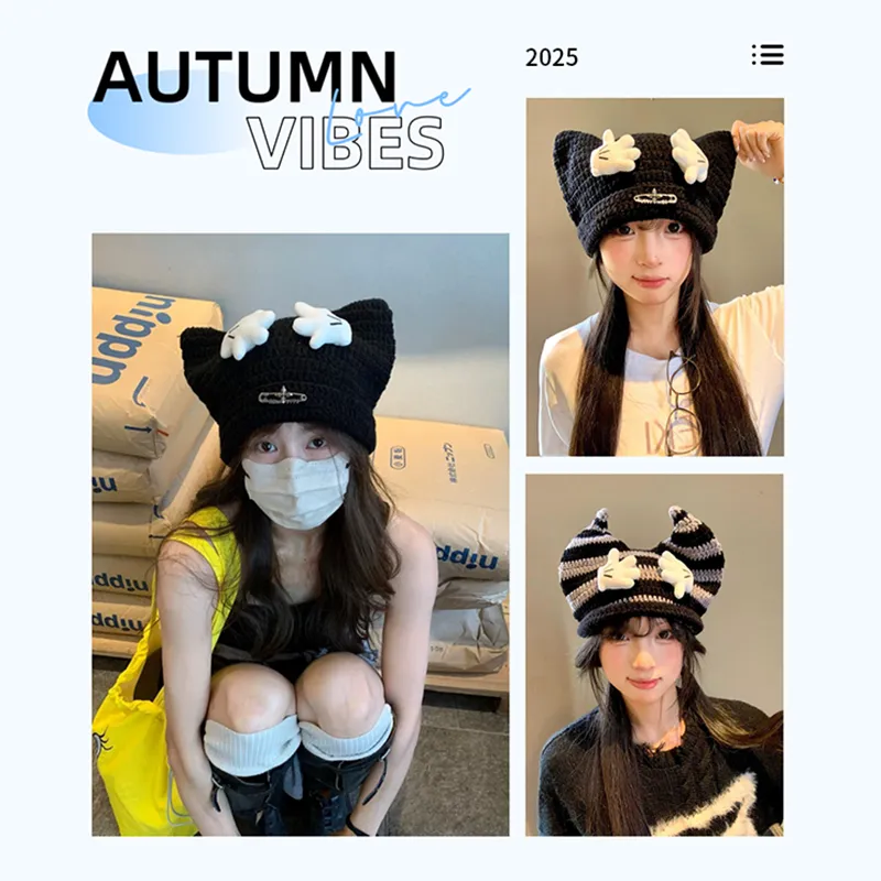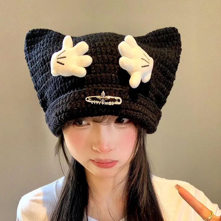 ⭐Ветряная мельница Булавка-Черный, Теплая шапка с ушами