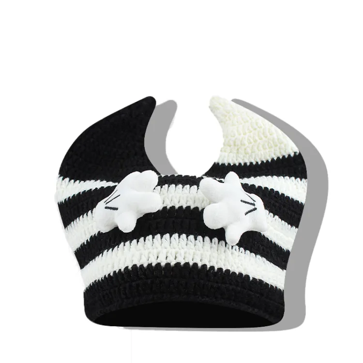 Полосы Horn Позиционирование стиля - Черный белый, Теплая шапка с ушами