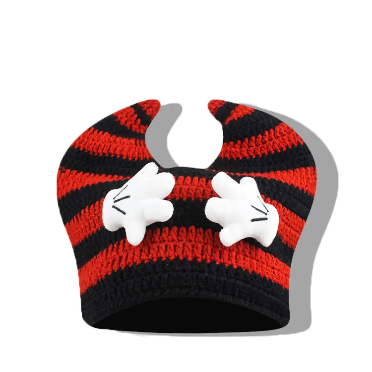 Полосы Horn Позиционирование стиля - Красный черный, Теплая шапка с ушами - Бини
