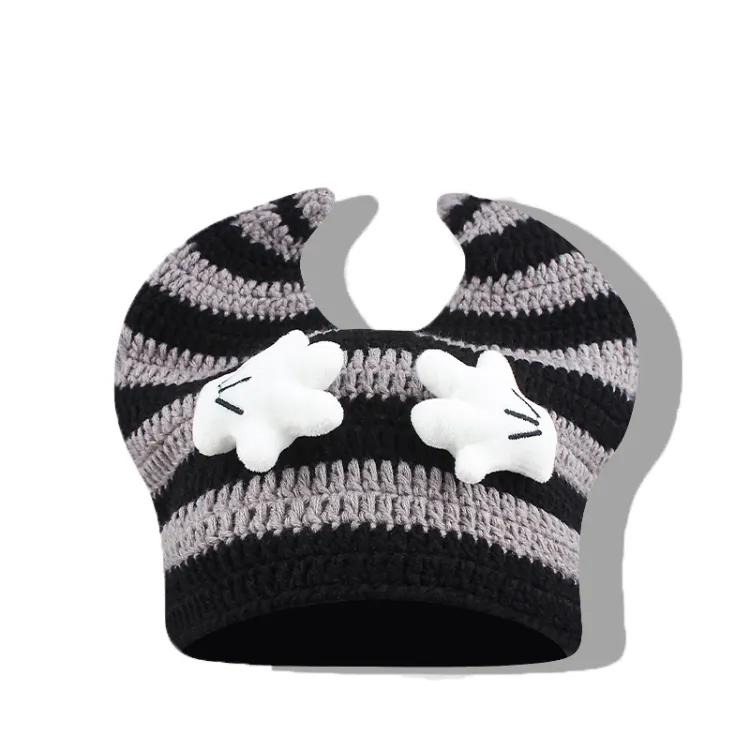Полосы Horn Позиционирование стиля - Серый черный, Теплая шапка с ушами