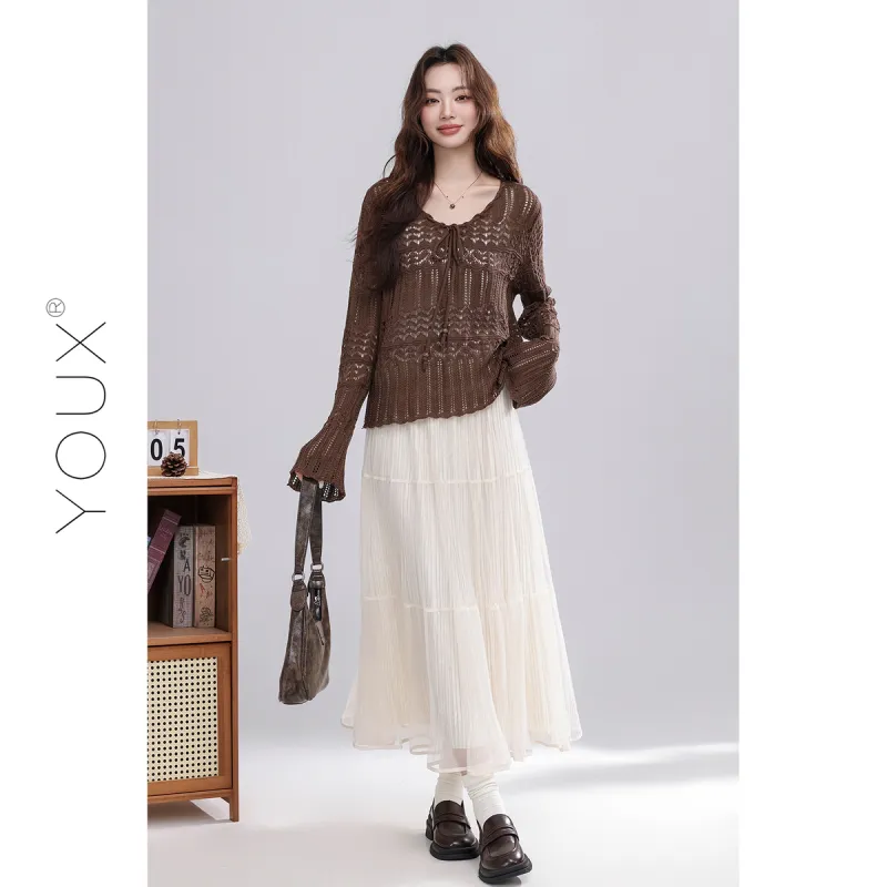YOUXIANG Темный кофейный женский трикотаж