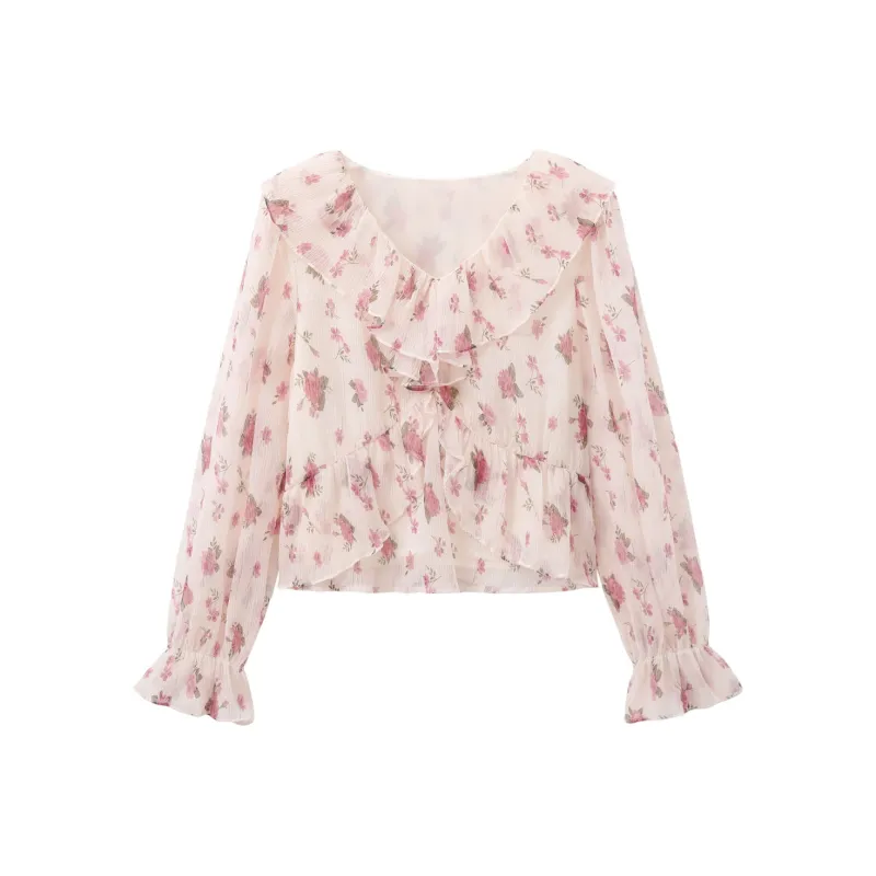 YOUXIANG Абрикос с Красным Цветочным Женские Рубашки