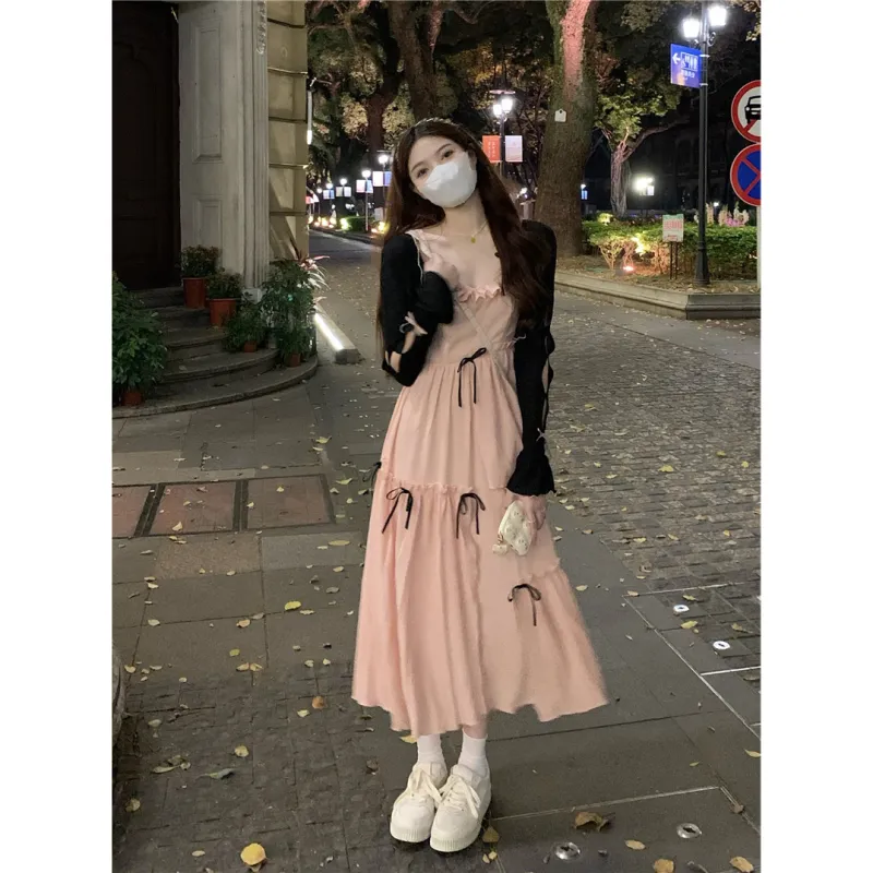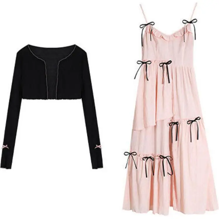 Цвет:Розовое платье-камазол + кардиган
