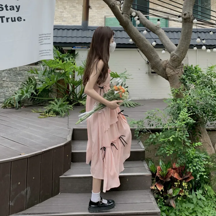 Розовое платье-камазол + кардиган