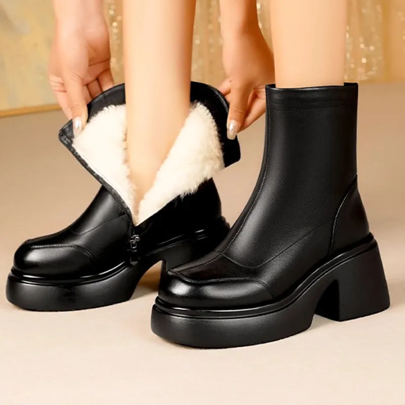 Black HF588-3 [Полная коровья кожа + Утолщенная шерсть подкладка]