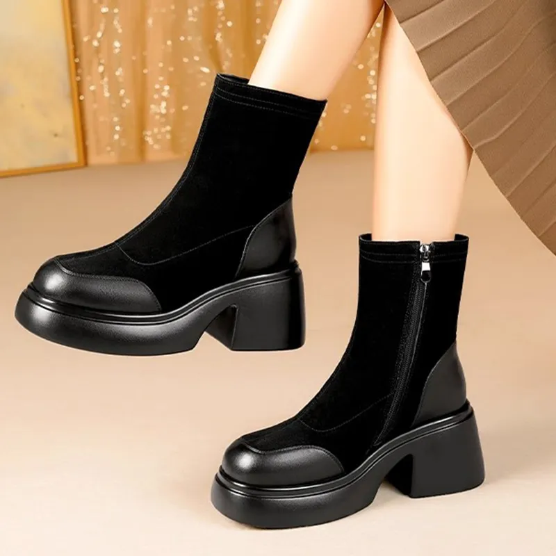 Black HF588-2 [Полуперфектная коровья кожа + Утолщенная шерсть, подкладка]