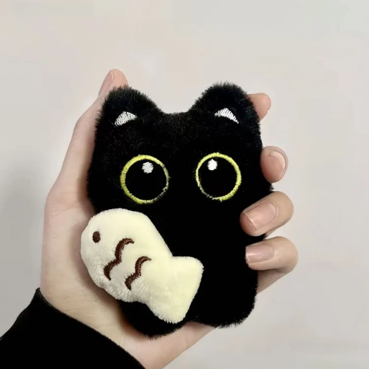 Название товара:Большеглазый черный кот-держащая рыбку стиль [1 шт]
