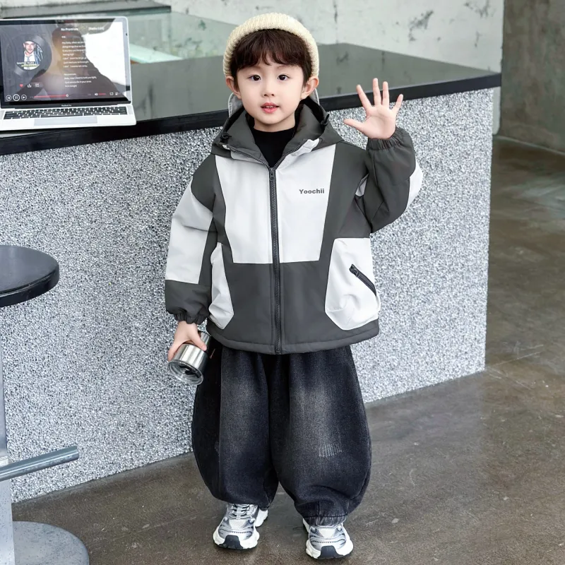 Цвет:Белый хлопковый пуховик + джинсы