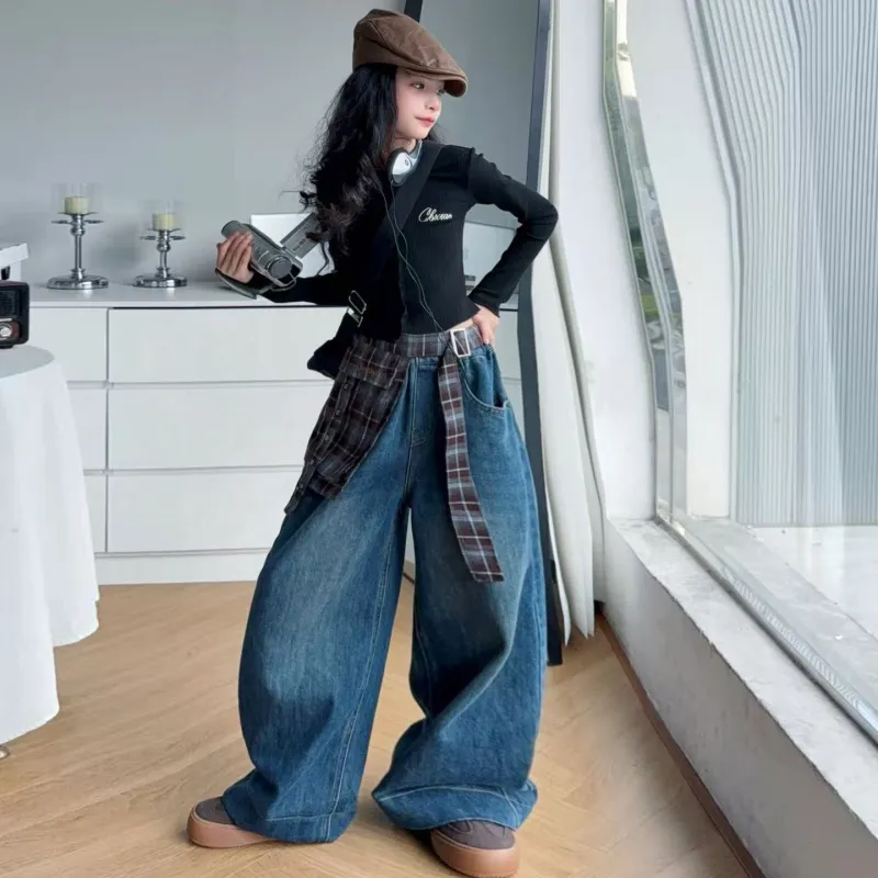 YUGUOGUO Синий с Юбкой Школьный возраст Джинсы