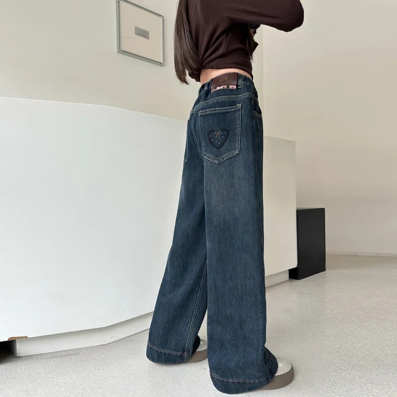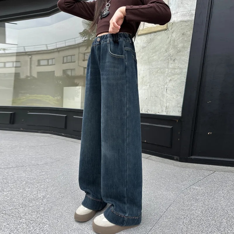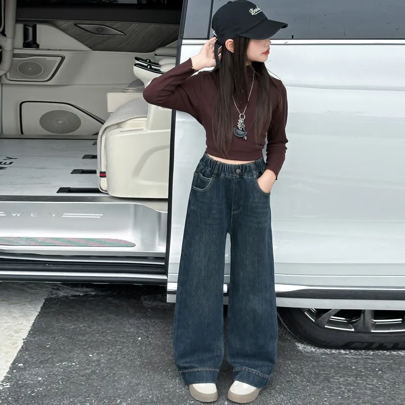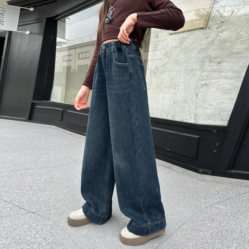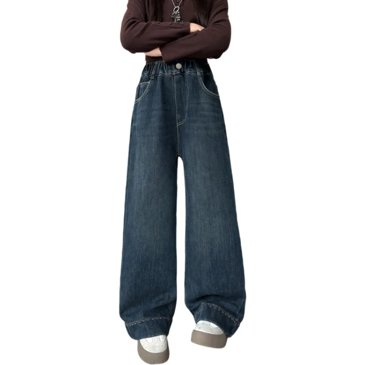 YUGUOGUO Blue Gray School Age Jeans YUGUOGUO Синие Серые Джинсы для школьного возраста
