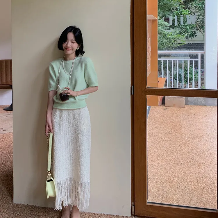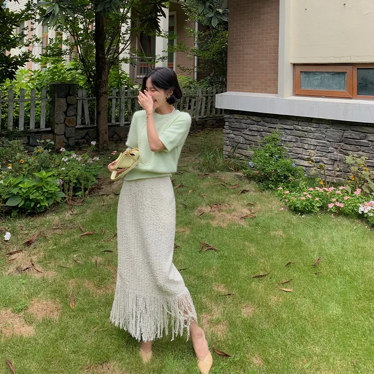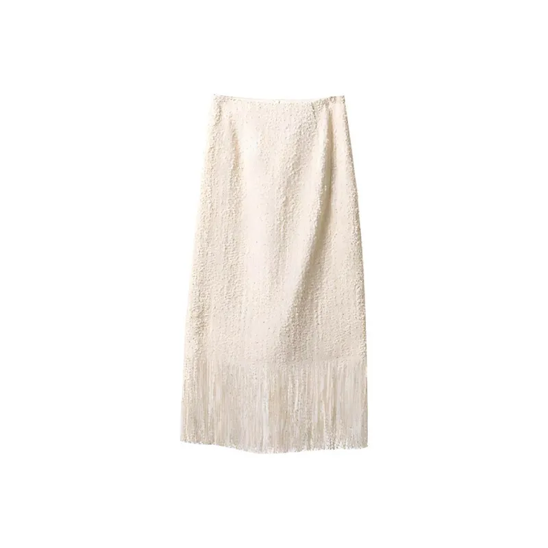 YUMOMO STAR Элегантная бежевая женская повседневная длинная юбка