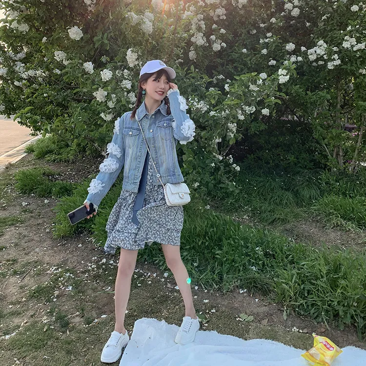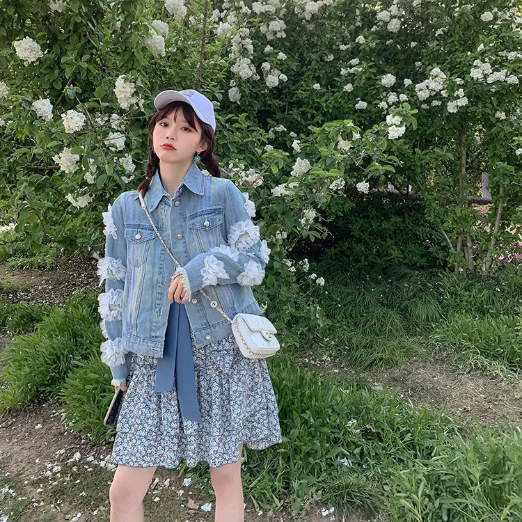 YUMOMO STAR Джинсовая куртка женская светло-синяя