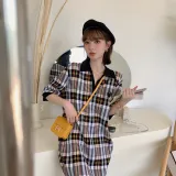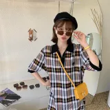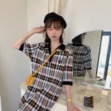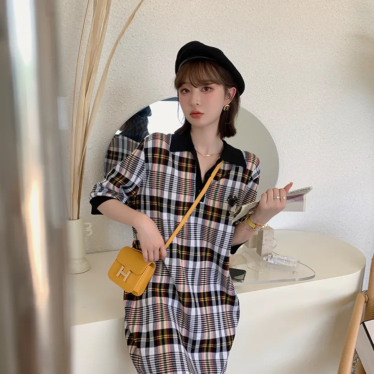 YUMOMO STAR Клетчатый Женские Короткие Платья с Рукавами