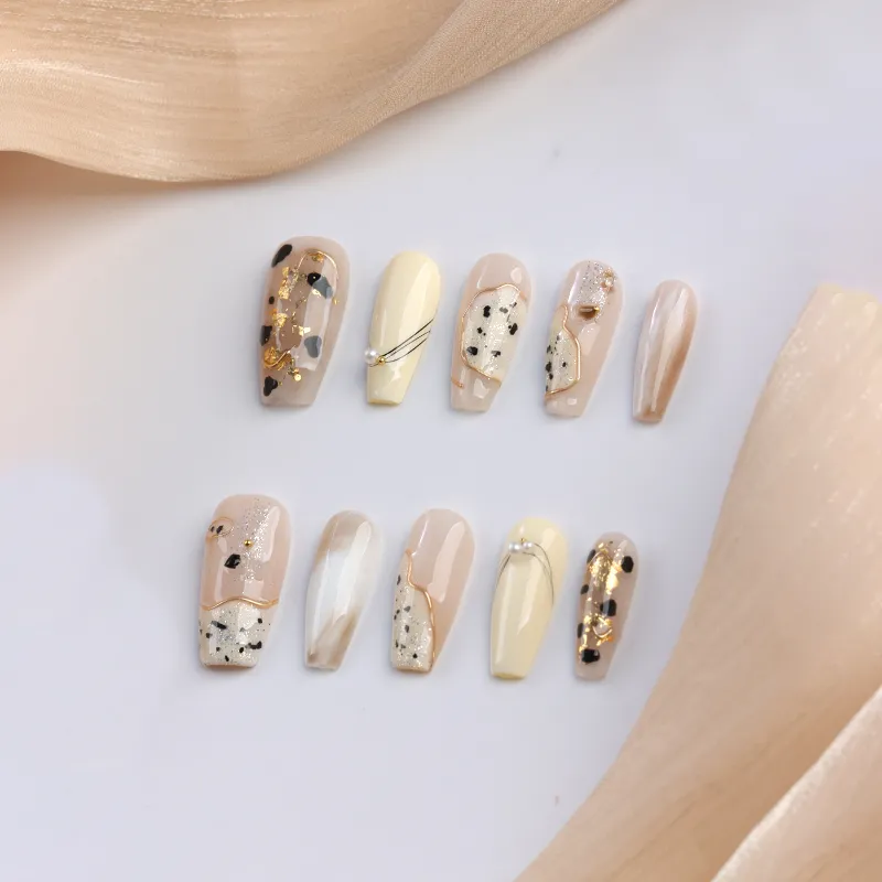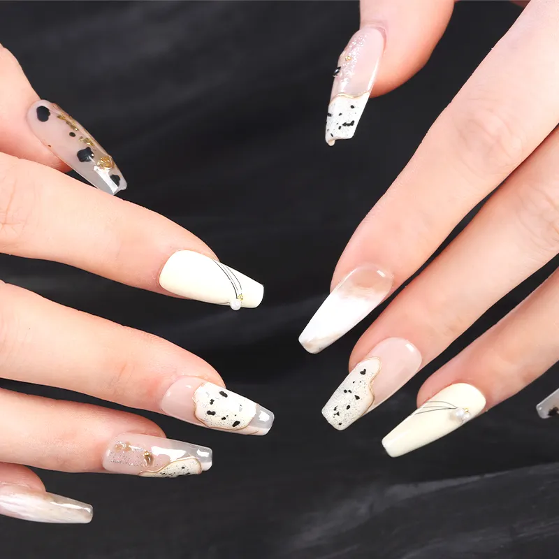 Yun Yue Joe Премиум Белые блестки Смешанная Ручная работа Линия Розовые оттенки False Nail Средняя Лестница 25 мм