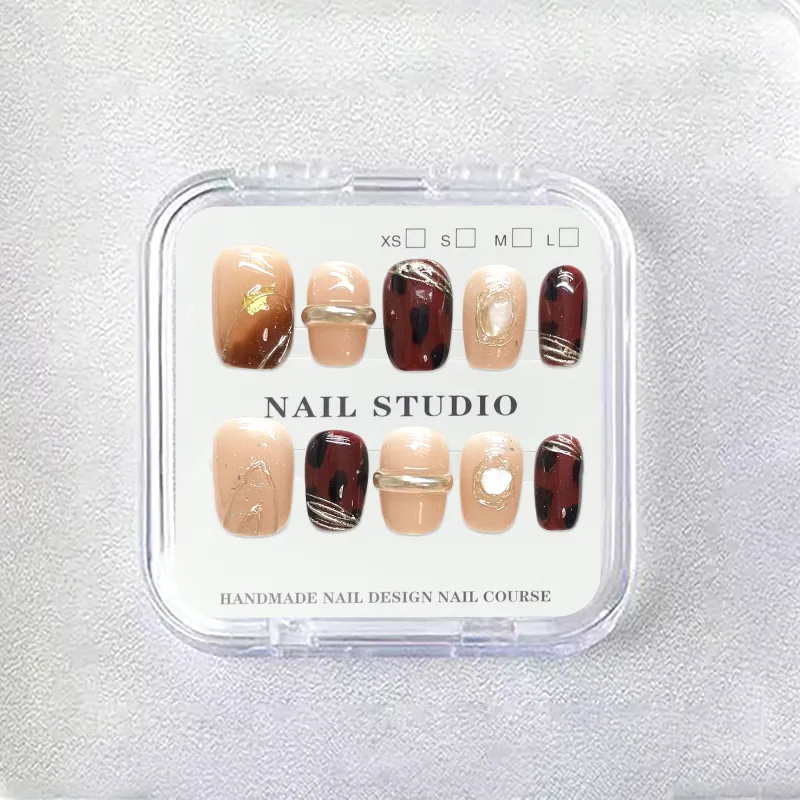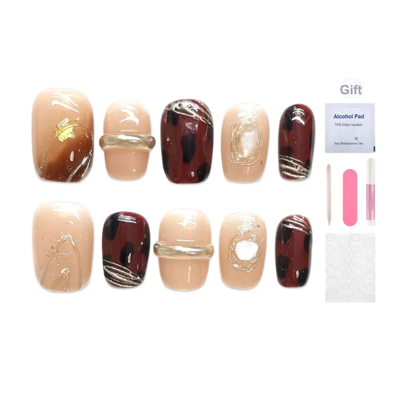Yun Yue Joe Миндаль Оболочка Ручная Рисованная Смешанный Кофе Стиль Майярд False Nail Короткий ЛАДЬЕР 15мм