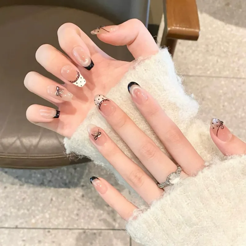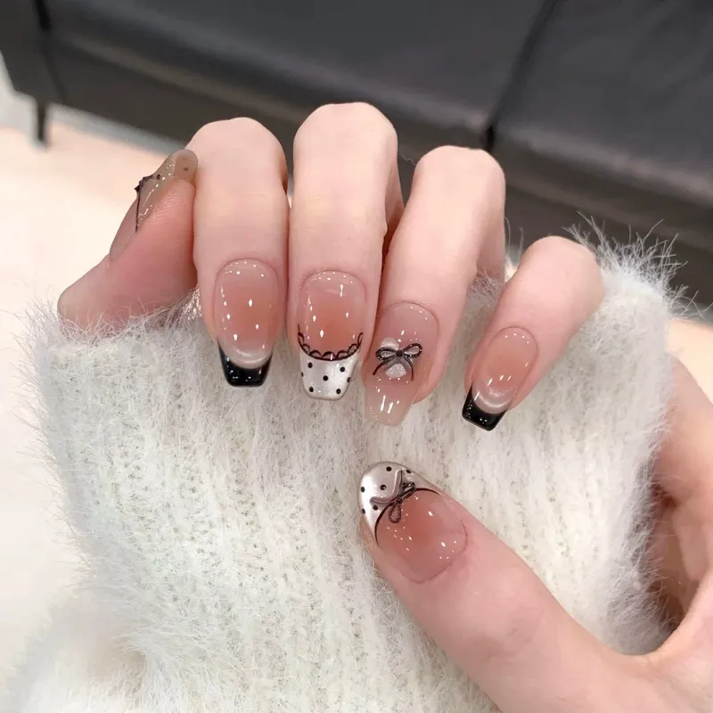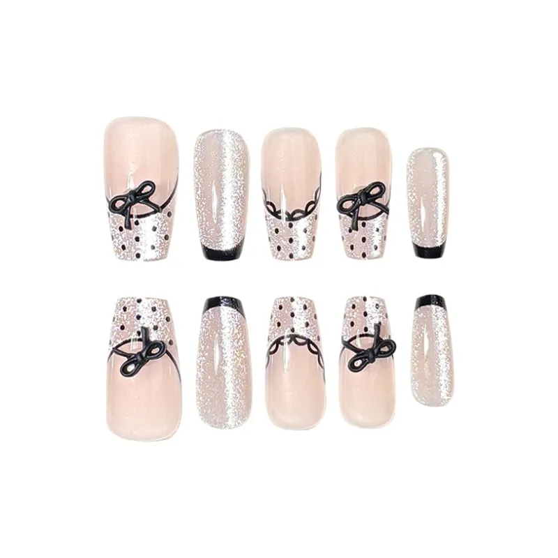 Yun Yue Joe Beautiful Мягкий Кружево Бант Эксклюзивный False Nail Трапециоид Шампанское Градиентный Французский