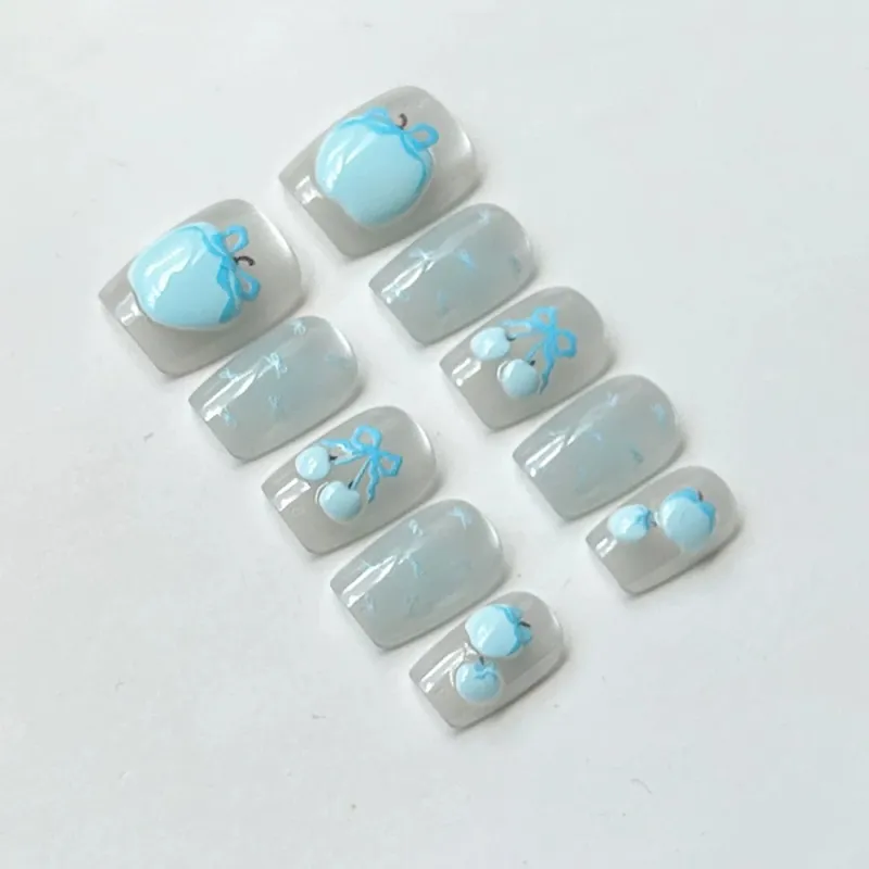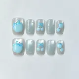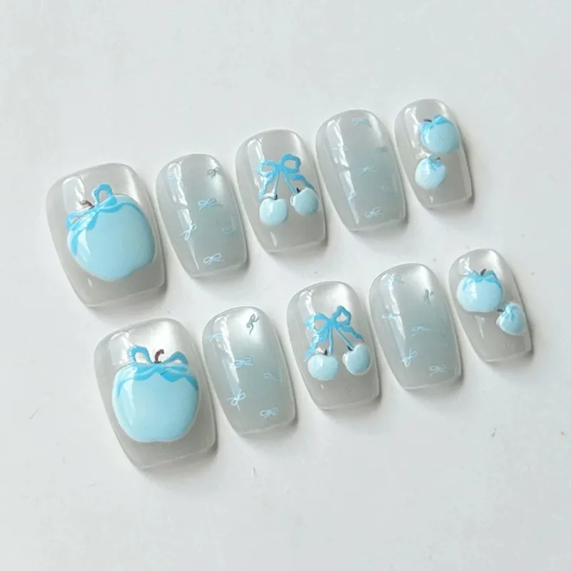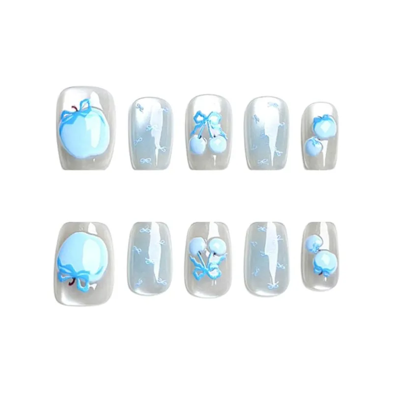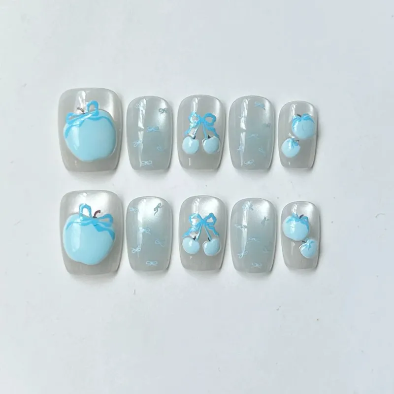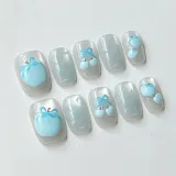 Yun Yue Joe Синий Яблоко Кошачий глаз Бант False Nail Короткий Синий Смоки Стиль Instagram