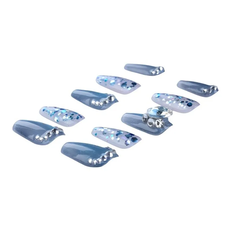Yun Yue Joe Синий Элегантность Сверкающий страз Handcrafted False Nail Короткий LADDER 20 мм